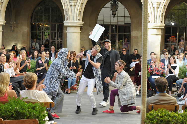The presentation, which was held at storied West Hollywood hotel Chateau Marmont, introduced the next generation of design talent to L.A.’s top stylists, editors, and influencers.  The show featured a Jazz band, futurist robots, pillow fighters, graffiti artists, and prairie fairies with baby lambs. Also participating were Hiplet dancers fusing classical pointe technique with Hip-Hop and urban dance styles, and hula-hooping courtesy of Karis Wilde, the androgynous performer who works in burlesque and cabaret.