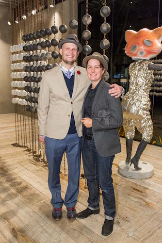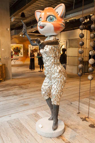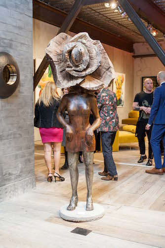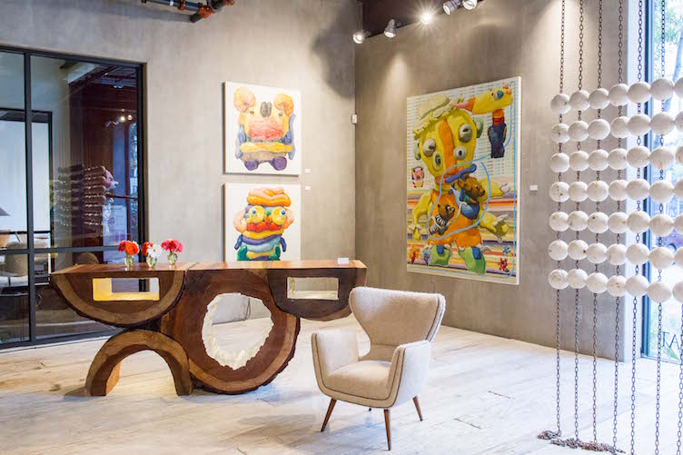 Coup d’Etat, the luxe interior design showroom from Darin Geise, was transformed into a magnificent gallery for one night only on October 19. Geise and his phenomenal team removed most of the furniture and wall hangings from the space. It was replaced with crazy cool sculptures and color-saturated paintings as two contemporary artists displayed their conversation-starting pieces.