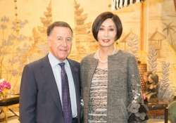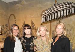 Hosted by Suzanne Tucker with honorary chair Aerin Lauder, the 35th annual show was a feast for the senses. When guests walked into the Festival Pavilion at Fort Mason, they were greeted by four breathing-taking vignettes. A pair of oversized gold great dane statues elegantly announced the show’s theme, Animalia, while silently watching guard over the entrance. Four local designers partnered with principal sponsor de Gournay to create distinct vignettes with luxe details and beautiful hand-painted wall paper. Ann Getty and Associates created a simple, yet wildly chic room with gilt wood stools from the English country house, Castle Hill, and an elegant poured-glass console from John Lewis. Jonathan Rachman Design took inspiration from a traditional Indonesia sculpture to create his vignette, a sitting room with plush textiles, Balinese umbrella, and vintage photography from Peter Fetterman Gallery. Catherine Kwong Design created a sophisticated tea room with hand-painted bird-print silk panels inspired by Alberta Ferretti’s latest collection. Antonio Martins Interior Design’s vignette had a bold wallpaper with green foliage, bright flowers, and exotic animals such as pink tropical birds and adorable armadillos. Although guests were not supposed to walk inside the vignettes, at the end of the evening, many were seen breaking the rules inside Martins’s lovely room with the fantastical wallpaper. It proved to be the evening’s ultimate photo op.