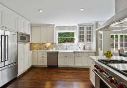 Complementing original attributes, the newly redesigned kitchen radiates classic allure while integrating current capability. Professional-grade appliances include a Wolf range, Viking refrigerator, and more. For congregating and creating, a peninsula offers seating and prepping areas, while the breakfast bay and formal dining area lie adjacent.