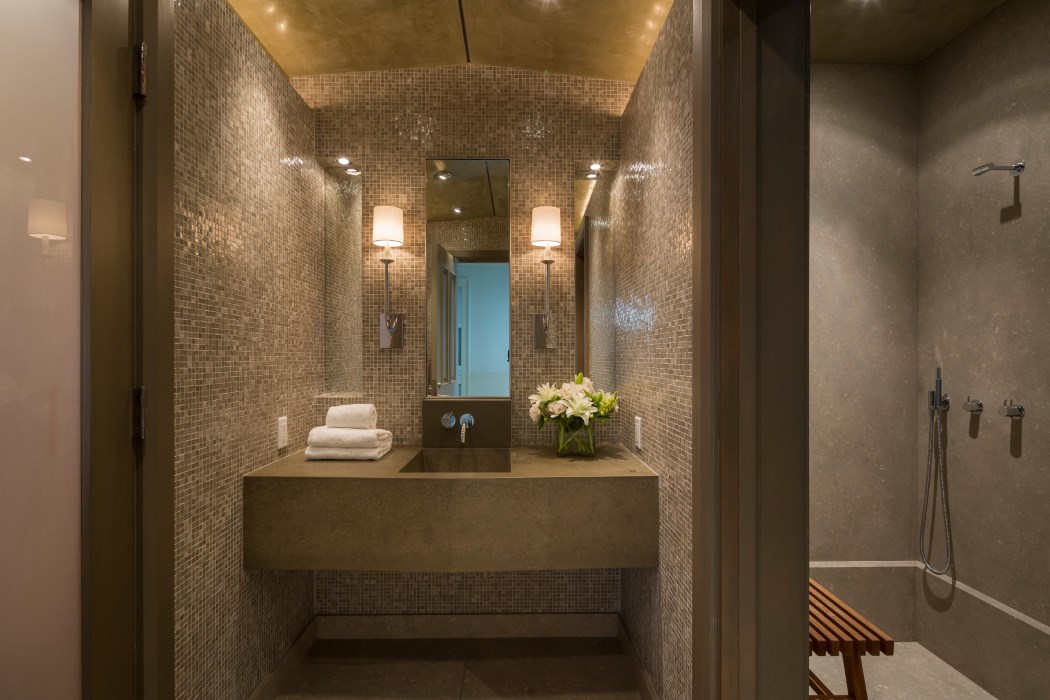 The upper levels of the home feature resort-class bedrooms and baths, a luxurious master suite, and a spacious top level pentroom providing breathtaking bird’s eye views. The lower level features a wine room, exercise room, spa bath with sauna, and family media room that opens to the gated motor court and includes interior access from the 3-car garage.