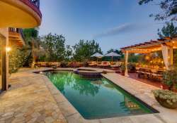 Enter this majestic Mediterranean Villa through its dramatic foyer, soaring ceilings and hand painted Italian-esque frescos and be transported to Tuscany. Privately tucked away in the hills above the Encino/ Tarzana border, this 5 bedroom, 6 bath home has 5500 sqft. of luxurious living space. A formal living room with wood beam ceilings and fireplace, a grand dining room for large dinner parties, 2 dens-one public, one private, beautiful Chef’s kitchen. A truly royal master suite with separate bath areas, walk in closets, and private office/gym or nursery en suite. At dusk, enjoy the Views from your balcony of the Valley lights and your 19,000 sqft. of lush grounds with spectacular pool and spa. Wine and dine under the sparkling lights and enchanting pergola, cozy fire pit with sitting areas. 3 car garage, plus ample parking for family and friends allows you to live the divine life that this exceptional residence offers.