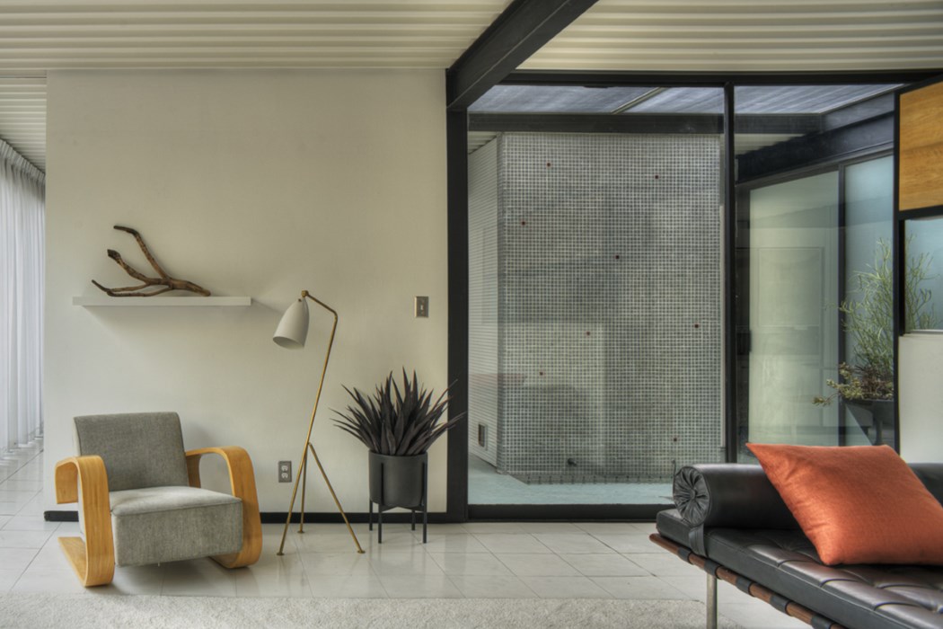 One of the most famous houses in Los Angeles, and acknowledged world-wide as a seminal modernist single home design, Case Study House #21 is arguably Pierre Koenig’s greatest steel frame design, and the high point of the Case Study Program promoted by Arts & Architecture Magazine from 1945 to 1964. The house was one of the few Case Study houses that was a true prototype in terms of ground-breaking design and use of new materials. Breathtakingly radical and innovative for its time, the public and private rooms are separated by a central core housing bathrooms and mechanical room. The structure is surrounded by water ponds that circulate to the roof and return as fountains. Koenig’s Case Study House #21 exemplifies the architectural revolution that took place in Los Angeles just after World War II. In 1997 Pierre Koenig was asked by the then current owner of the home to restore the house to its former glory, and this was completed in 1998.