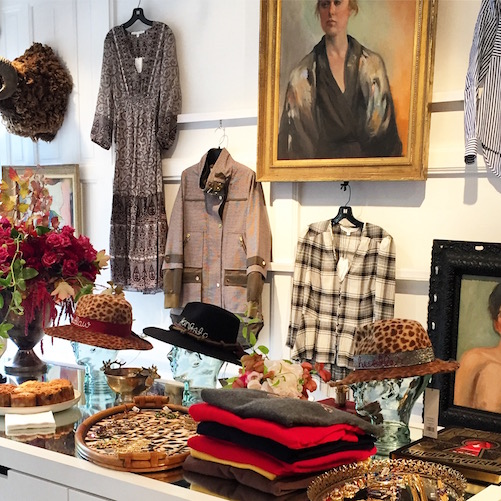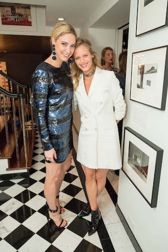 Alexis and Trevor Traina are the king and queen of San Francisco’s old guard of socials and when they throw a party you know it’s going to be good. Tuesday night they did just that: the couple hosted a cocktail-and-canape hour in honor of Alexis’s little sister, Veronica Swanson Beard, being in town. Veronica is one half of the all-American womenswear line Veronica Beard. Her co-designer happens to be her sister-in-law, Veronica Miele Beard. The Veronicas, as they are known, were in San Francisco to open a two-day pop-up shop on Sacramento Street. Ken Fulk transformed the Hillary Thomas Designs boutique into a chic boudoir with hide leopard print rugs, vintage paintings, copper clothing racks, a giant gilt mirror with ‘I want it all’ written across the top in pink lipstick, and two large room dividers upholstered in navy blue velvet with an American flag draped over the top. The pop-up was filled with Veronica Beard’s signature Dickey blazers, tailored tops, and flirty dresses. Much of the decor was part of Fulk’s installation at the lower level of the New York Veronica Beard boutique. The store opened in September on Madison Avenue and Fulk set up a party girl’s basement apartment as a backdrop for the opening event.