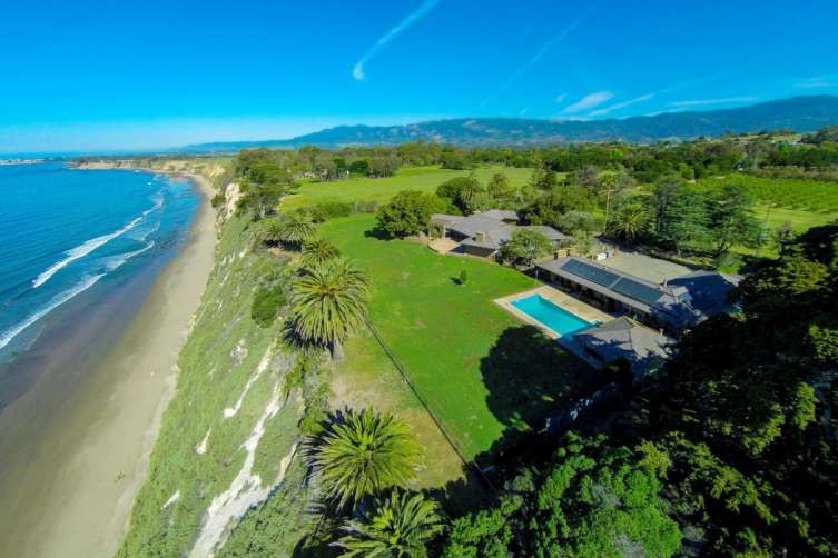 Sited high on an oceanfront bluff on Via Roblada is a magnificent estate property of approximately 13 acres, with 399 feet of bluff top. The approximately 4,900-sq.ft. adobe style home combines elements of Futurism and Traditionalism.