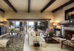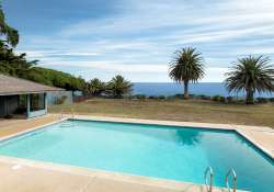 Entry doors open to reveal views to the Pacific. Incredible adobe brick walls in the living room, link the home to the Spanish heritage of early California. On axis with the living room is the elegant formal dining room. Located beyond the dining room is the handsome library. The focal point of the master bedroom is a raised hearth fireplace. French doors open to a private terrace with beautiful ocean vistas; spacious master bath and walk-in closets. Four bedrooms, each sharing a bath, comprise the family/guest wing and enjoy garden vistas, pool and cabana.