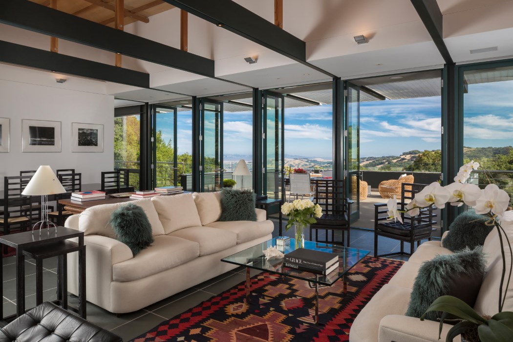 Located on approximately 20 oak-studded private acres overlooking the town of Sonoma, with views to Mt. Diablo and San Pablo Bay, sits one of Sonoma County’s most prized estates. Designed by a noted San Francisco architect as his family’s private retreat, this spectacular ultra custom approximately 4,980 sq.ft. main house with expansive landscaped pool area that graciously separates the approximately 840 sq.ft. guest house with professional observatory is an exquisite example of classic modernism.
