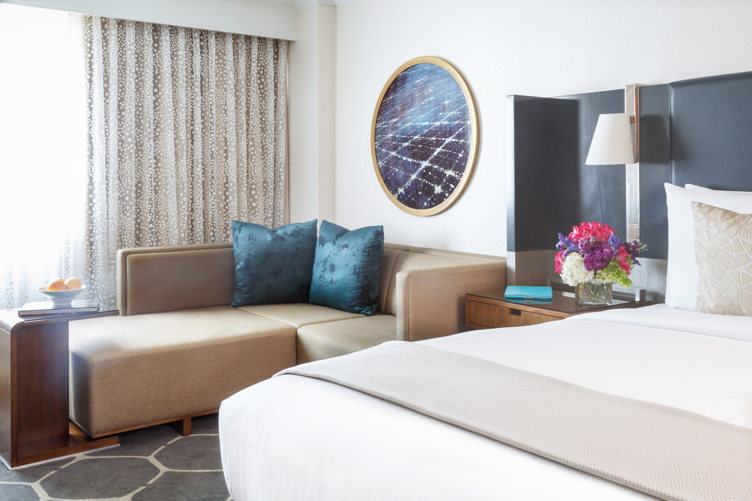Camp out at the Royal Sonesta Houston, one of only four of the Sonesta brand’s top-tier properties in America. As with each of the Royal properties, you’ll feel like you’re fully immersed in the city. This Royal hotel has a prime location: it’s situated at the gateway to the Uptown District and just steps from the world-renowned Galleria mixed-use complex as well as walking distance to the shops and restaurants of Post Oak Boulevard and Westheimer. A recent, $30-million renovation has positioned the 485-room, 23-floor landmark with 50,000 square feet of state-of-the-art space utilized for an array of high profile weddings and society galas as a go-to destination in the city. The hotel’s transformation was timed perfectly to take advantage of tremendous growth in Houston, which is why it has a cosmopolitan, less rustic approach than many hotels in the area. Many aspects, ranging from the custom, sculptural light fixtures in the lobby to the vibrant art throughout, reflect the influence of science and technology on the city’s landscape. Award-winning Looney & Associates has created an environment that is contemporary without being cold through an artful use of contrasting textures and a warm color palette, in addition to a mix of metal finishes and wood tones. You may not feel like you’re in a city at all though with the amount of outdoor/athletic activities on offer: there are hiking trails, courts and links at the nearby, 1500-acre Memorial Park as well as in-house at the hotel’s oversized and light-filled fitness center and adjacent rooftop pool. Plus, you won’t go wrong here when it comes to recommendations, given that the Royal Sonesta offers one of the city’s only Les Clefs d’Or.