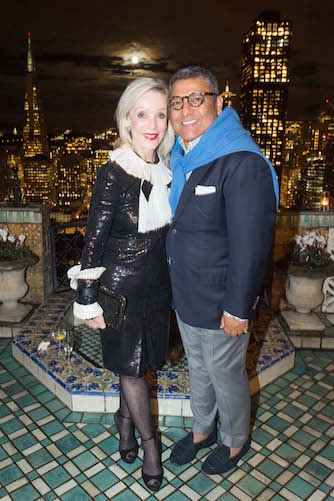 On Thursday evening, a larger crowd gathered for an event at the Fairmont’s luxe penthouse. Hosted by La Perla, the party was in honor of the gala’s patrons. Models walked around the palatial suite clad in La Perla lingerie, slinky pajamas, and pieces from the Italian designer’s latest ready-to-wear collection. Shoes and purses were on display in the dining room. The circular-shaped library doubled as a bar where the guests picked up flutes of champagne. Passed appetizers included short ribs on dollops of mashed potatoes and tuna tartare on crispy wontons. The moon and glittering Bay Bridge provided a stunning backdrop to snap a selfie. Guests included Seltsam, Brenda Leff, Phoebe Mireles, David and Vicky Cox, and Mary Gonsalves Kinney.