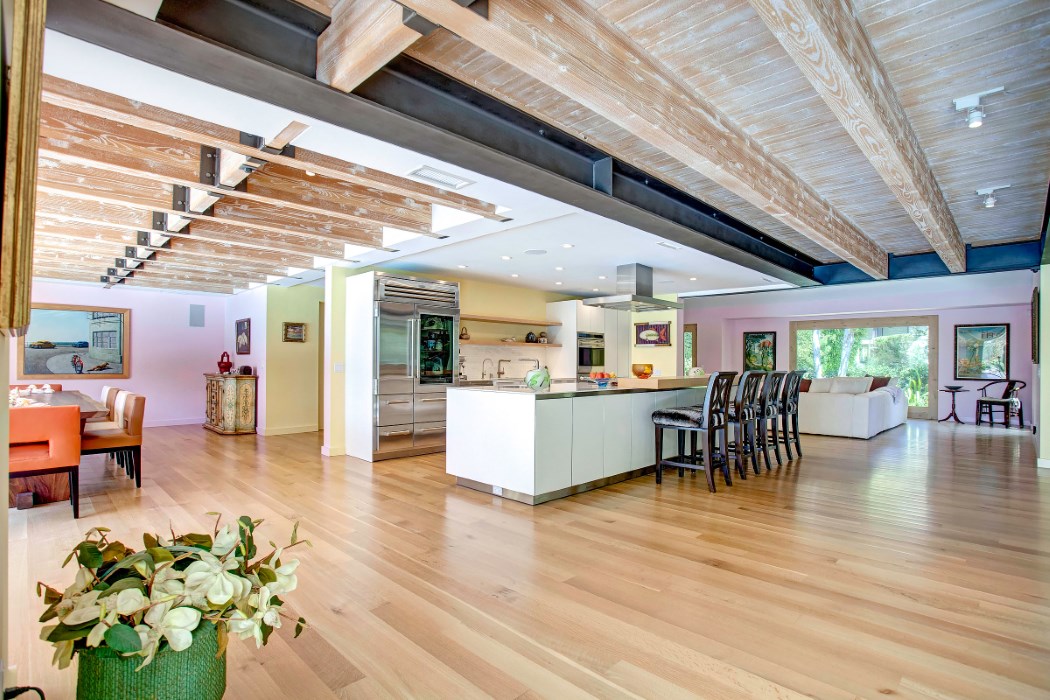 Welcome to one of Malibu’s most prestigious neighborhoods, the famed Serra Retreat, a comfortably guard-gated community located near the nostalgic surf capital of the world, Surf Rider Beach, with many posh boutiques and restaurants, Malibu Pier and even horse riding trails nearby. An amazing “Unvarnished” modern home designed by Scott Gillen on one of the most magical lots Serra Retreat has to offer: a 53,270 square foot (approx) property with soaring sycamore, eucalyptus, fig, plum and citrus trees, outdoor pool, fire-pit, built-in barbeque, dining area and all of this in a quiet country setting alongside Malibu Creek. Enjoy your Chef’s dream kitchen, with Bulthaup Island bar, top-of-the-line stainless steel Wolf appliances, a double oven and six-burner stove with center griddle, Sub-Zero glass door refrigerator, and a 45-bottle Uline red/white temp-controlled wine fridge. Enjoy the entertaining/TV room with its high, vaulted ceilings and massive, picturesque windows that frame beautiful gardens and mountain views. Retire upstairs via the floating steel and oak staircase, up to oversized bedroom suites which each include sitting areas, huge walk-in closets and spa bathrooms with frameless glass shower enclosures. Other significant features of the home include a Sonos smart home sound system, a water filtration/softener system over the entire house, a Noritz tankless water heater, a back-up generator, and home security system. Rejuvenate body and soul, day and night, while swimming or lounging in your infinity pool with Baja shelf and spa. Tend to your sustainable fresh vegetable garden, or roast marshmallows while relaxing by your 15′ steel firewall. Here the quiet, the calm and the choices are all yours.