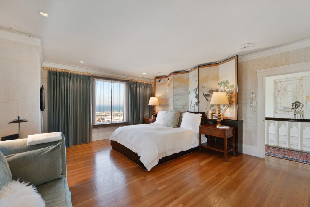 Iconic six bedroom Gothic Tudor mansion perched on the slope of Russian Hill. Built in 1914, this home has been elegantly maintained over the years keeping the old world charm of gothic moldings and stained glass windows. Enter in the home and be welcomed by a grand hallway and staircase showcasing glorious Golden Gate Bridge, Alcatraz, City and Bay views. This grandeur home boasts 4 floors, a master suite featuring 2 dressing rooms, all 6 bedrooms have ensuite baths. Downstairs there is a large family room which offers unlimited home entertainment possibilities. Wine cellar, storage space and lush green backyard complete this masterpiece.