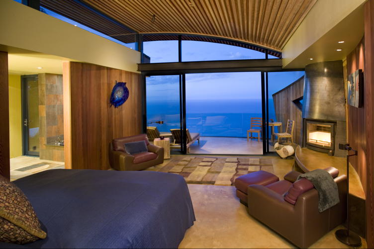 - Individualized stays. The Post Ranch Inn has 40 architecturally innovative guest rooms and suites placed along the ridge that parallels the Pacific Ocean. Each room/suite at this adults-only property (you have to be 18 to stay, no exceptions!) offers a completely different yet all very luxurious experience with views of either ocean or mountain scenery. Each guest has their preference. Room designs use earth tones with an emphasis on natural and sustainable materials, with custom furniture, rugs hand-woven by indigenous weavers and reclaimed wood, including old-growth redwood from wine casks, re-milled to create rich wood wall panels. The organic hues, textures, and extensive collection of original art inside the rooms blend seamlessly with the scenic beauty of the outdoors. Many guests book the Cliff Houses because of their deck that’s suspended over the western edges of the ridge, making it seem like you’re suspended over the ocean. The view can best be enjoyed from your outdoor spa or, conversely, from your glass-walled bedroom.Guests enter through an enclosed courtyard to the secluded bedroom designed with custom-built furniture and a hot tub on the private terrace. Then there’s the Ocean Houses, which boast curved, beamed roofs covered with a soft carpet of grass, with private ocean views enjoyed from the terrace, bath and bedroom. Each circular-shaped Coast House provides a comfortable seating area in front of the replace and glorious ocean views. This is where we stayed and we couldn’t have picked a more perfect spot. In addition to our epic ocean view, we had a double-sided fireplace, an inside alcove to watch the sunset and a sunken, old-fashioned tub, all in a room that resembled something out of The Shire. It was so beautiful that we almost wished we could live in the room forever. There are the Tree Houses, triangular in shape, are elevated 9 feet off the ground on stilts, Mountain House rooms with views of dramatic mountain peaks and Butterfly rooms which are housed in a building designed to look like a butterfly with outstretched wings. Last but not least is The Post House, new as of 2015, an 1,800 square foot open-concept suite that features a kitchen with designer appliances and a skylight, a dining room with custom-designed formal dining room, a media room, master bedroom, master bathroom and living room. The master bedroom features clear coastal views and the master bathroom offers heated slate flooring, a large rain shower with stone flooring and an oversized bathtub. There’s also a multi-person bathtub. Just saying.