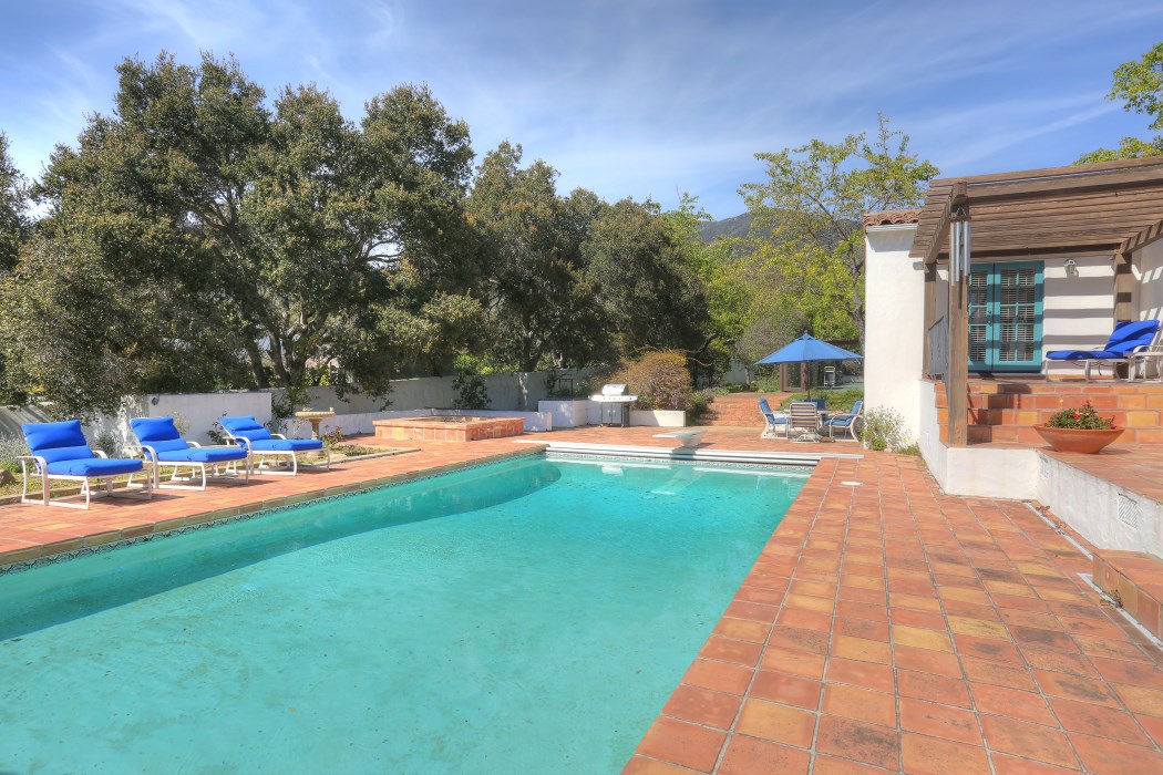 Enter through the private gates and over the paved driveway to view this single story Mediterranean-style home, which features three bedrooms three and a half baths, formal dining, living and family room, high ceilings and wood floors on approx. an acre. Enjoy the large swimming pool and hot tub which are surrounded by a Saltillo tile deck and can be accessed from either the living room or master suite. The property boasts a North/South facing tennis court which gets plenty of natural sunlight year round. There’s a full perimeter wall which is great for securing small pets and allowing them to roam the property. Plenty of storage in the three-car garage! Located in one of Montecito’s most sought after neighborhoods the “Golden Quadrangle” and in the award winning Montecito Union School District.