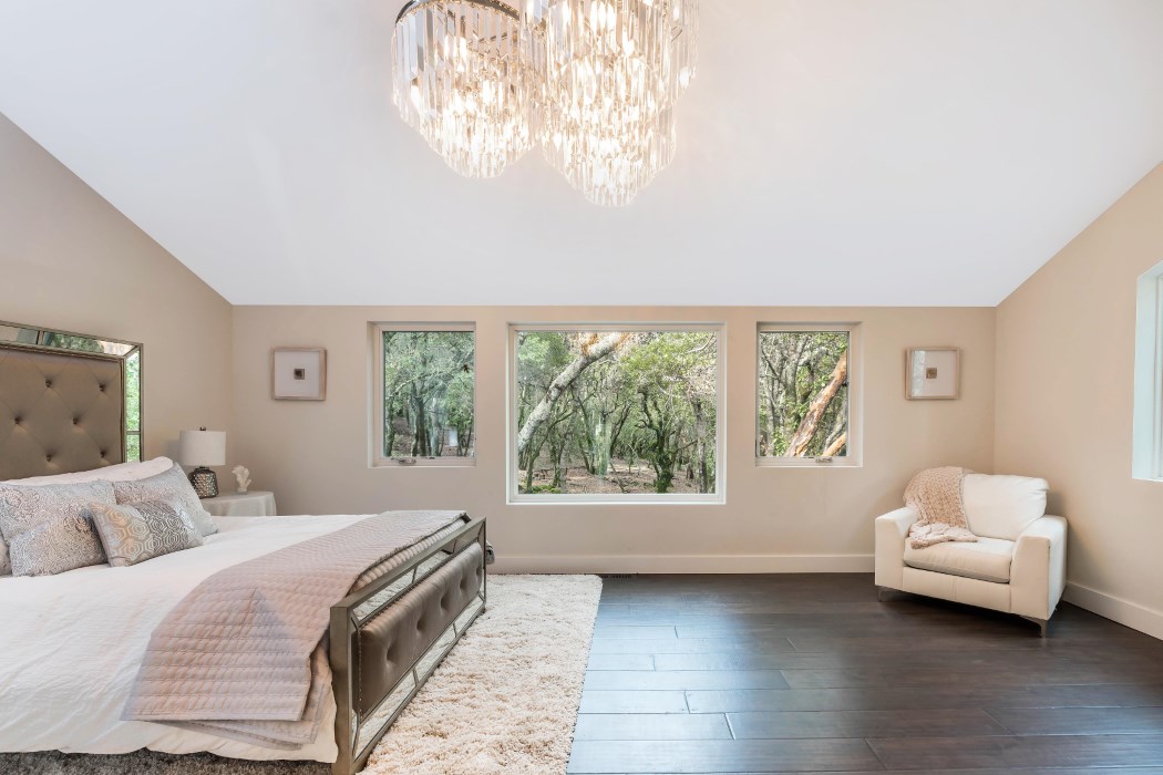 Nestled in the western hills in the prestigious private gated community of The George Ranch, this Sonoma Copper House boasts resort style amenities just minutes from the historic downtown Sonoma Plaza. Renovated in 2016 with stunning modern architecture and attention to detail, this home is an entertainer’s paradise complete with a professionally outfitted gourmet catering kitchen including Carrara marble counters and top of the line appliances. The 3 en-suite bedrooms and master suite offer views of the pristine oak woodlands and lavender covered hillside. Enjoy spectacular views of Mt. Diablo and San Pablo Bay while lounging by the brilliant blue infinity edge saltwater pool and integrated spa. Additional finished living space perfect for a media/game room or guest quarters sits above the 2 car garage and is attached to the main home by an open-air bridge. The stairway in the “copper-clad” tower brings you to a 3rd floor “aerie” complete with wet bar and rooftop terrace with views for miles. The parking area easily accommodates 15+ cars. With over 1,000 “Provence” lavender plants cascading from the base of the pool to the impressive stone entrance, this home truly exemplifies an exquisite wine country lifestyle. The George Ranch community association membership includes use of the clubhouse, tennis courts, pond and hiking/riding trails.