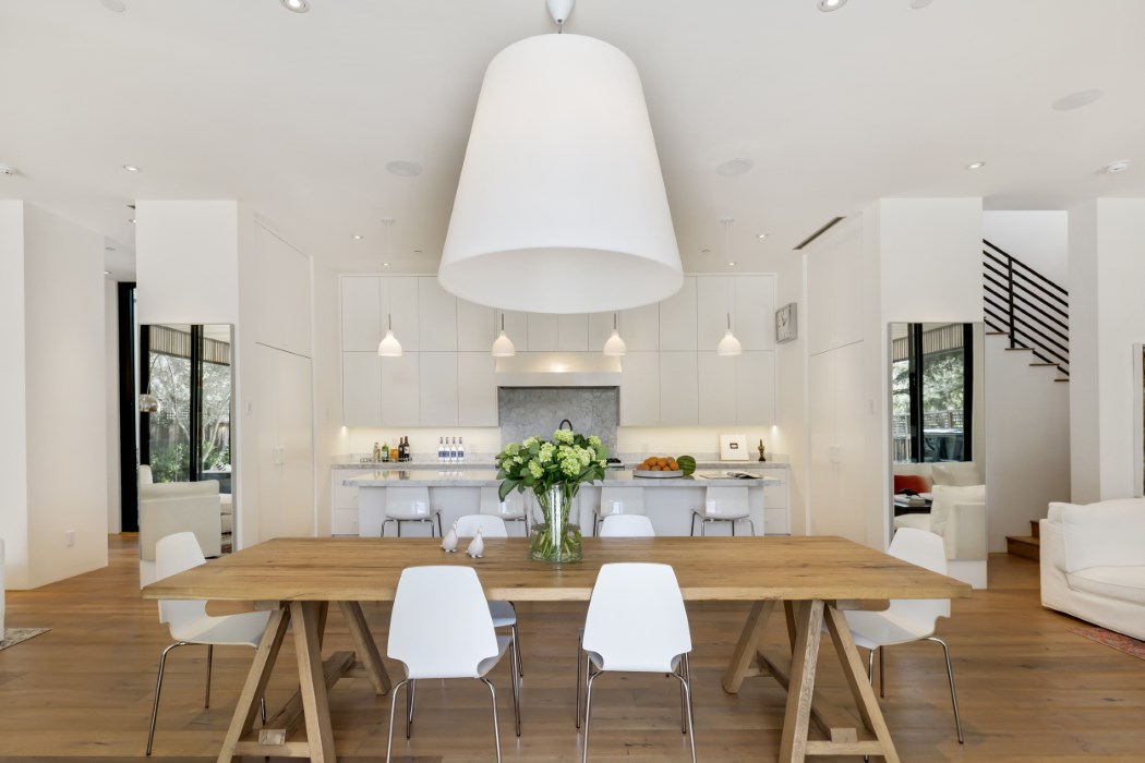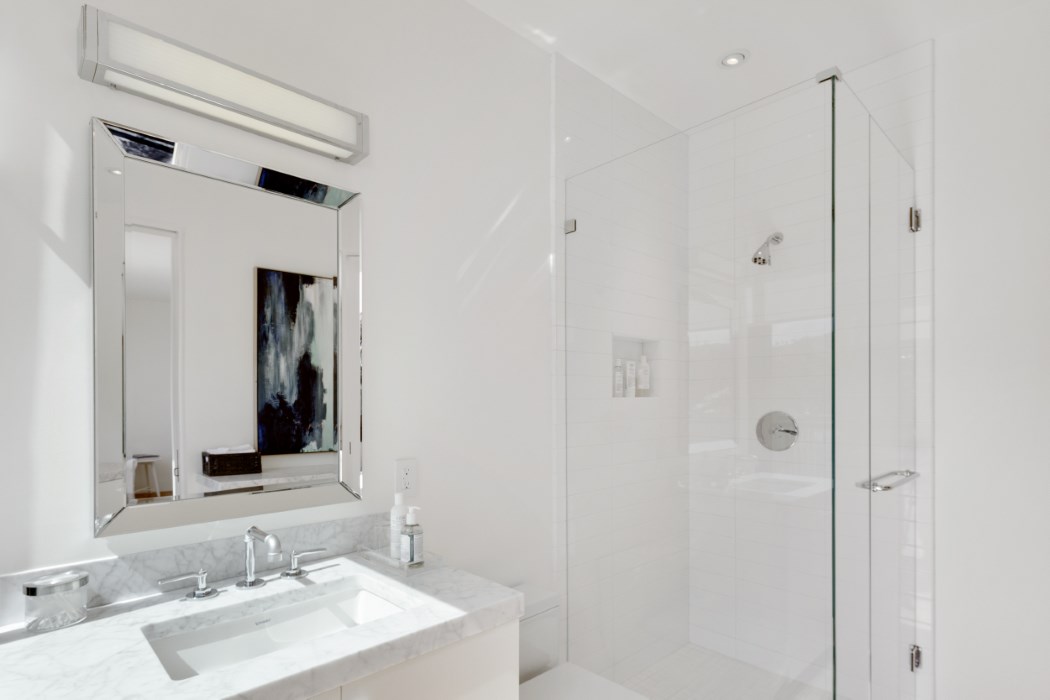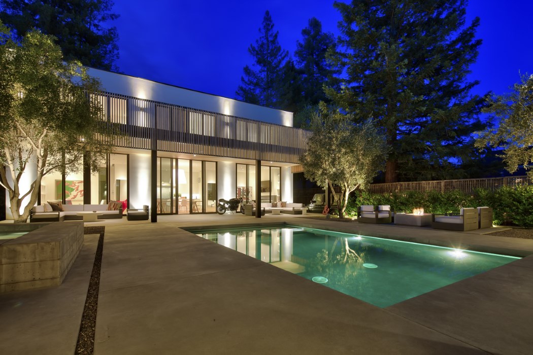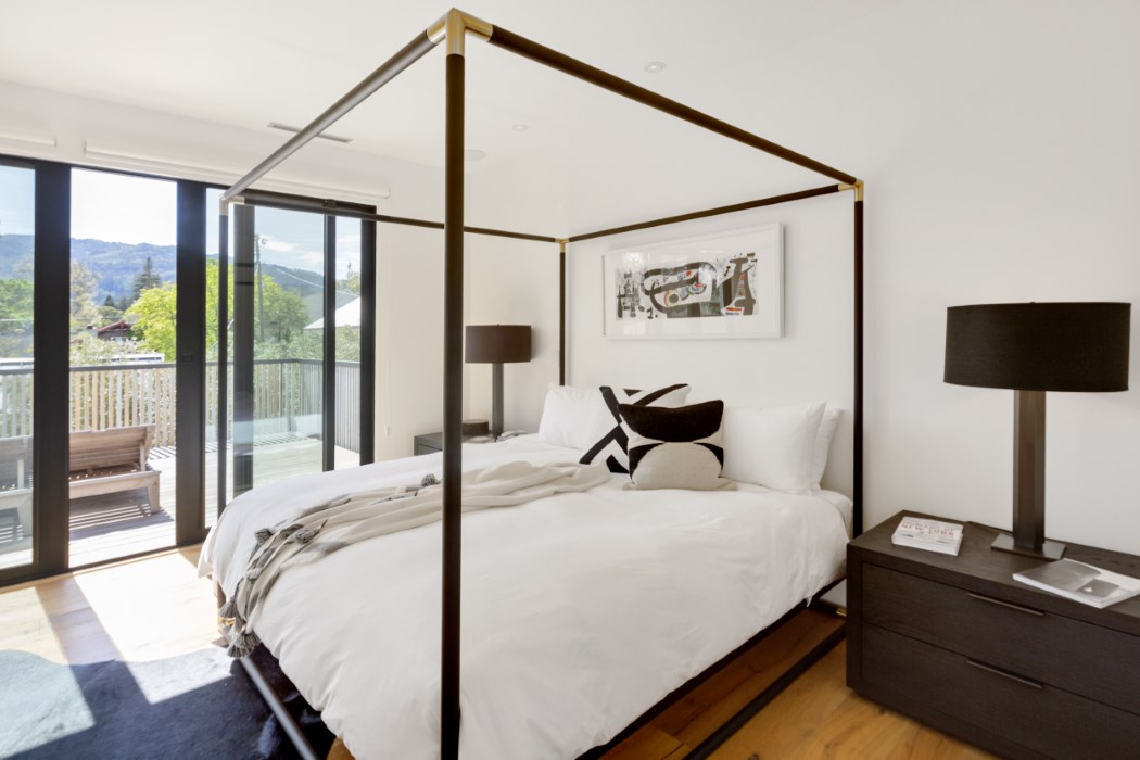 Welcome to 1318 Stockton St, a stylish retreat in the heart of St. Helena. Architect Shay Zak and Designer Mary Moore collaborated to create a simply irresistible compound. Keeping with the signature design nature of Zak Architectures, simplicity is key, as well as the use of authentic materials. Solid wide plank oak floors, Carrara marble, Fleetwood black steel windows/ doors, stainless steel appliances and subway tiles are just a few of the materials that add bravura, but incorporate a toughened functional atmosphere. The main floor, rectangular in shape, boast a great room which includes the kitchen, dining area and two living spaces. The second story incorporates a comfortable common area and two bedrooms en suites; all flowing out to an oversized deck overlooking a serene courtyard. Zak and Moore incorporated several intimate spaces that add to the unity of the courtyard and the relationship the pool plays as the central focal point of the outdoor living space. As you continue past the fire pit, spa and olives trees you will find a two-bedroom en suite guest house, divided by a breezeway. The guest house suites are an extension of the main house, tying in the use of real materials such as solid oak floors, black steel windows/ doors and Carrara marble. Each suite showcases the attention Moore has placed on the connection between outdoor and indoor living spaces. “I feel like I am always on the verge of being inside and outside at the same time here” says Moore. To Zak and Moore, this St. Helena compound is simply irresistible!