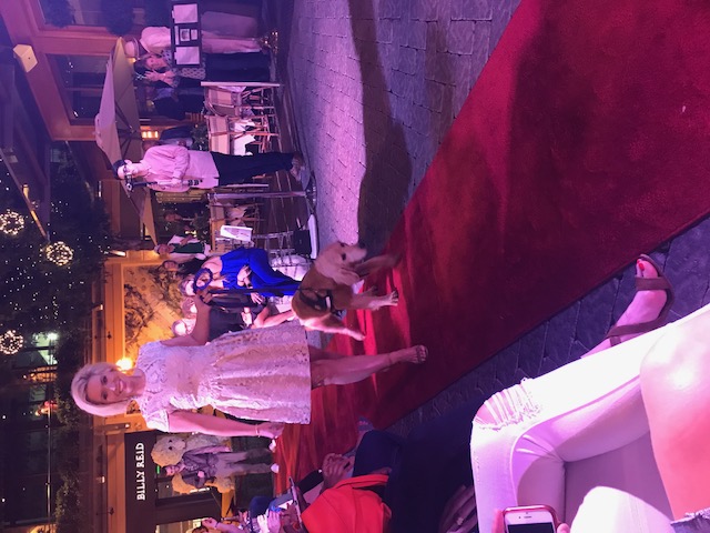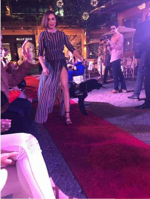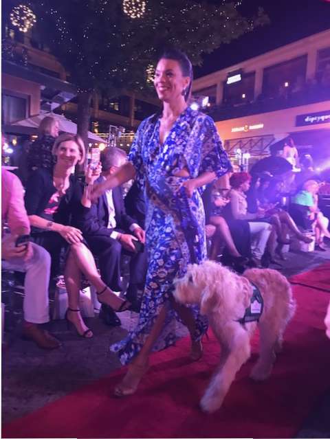 Despite a brush with some showers, the evening turned out to be a huge success with gorgeous models, fashion and the true stars: the canine assistants. E. Vincent Martinez, who founded the event 10 years ago was honored by the organization when they named a service puppy after him to show their appreciation for all his hard work. Below, Vincent carries Vincent down the runway.