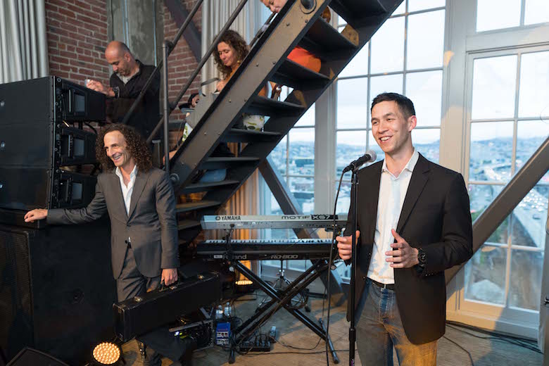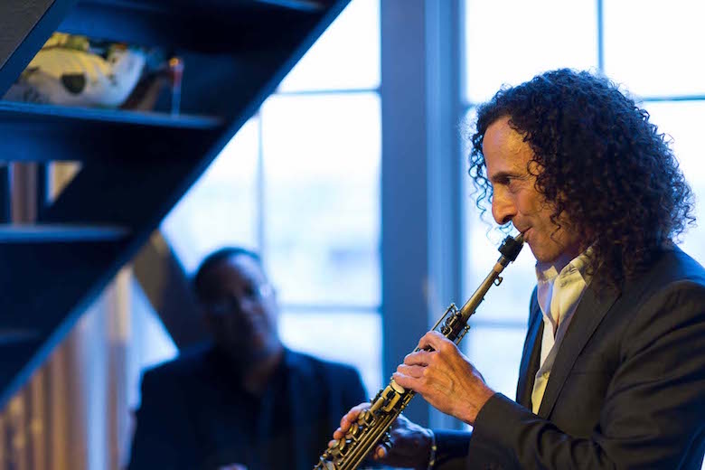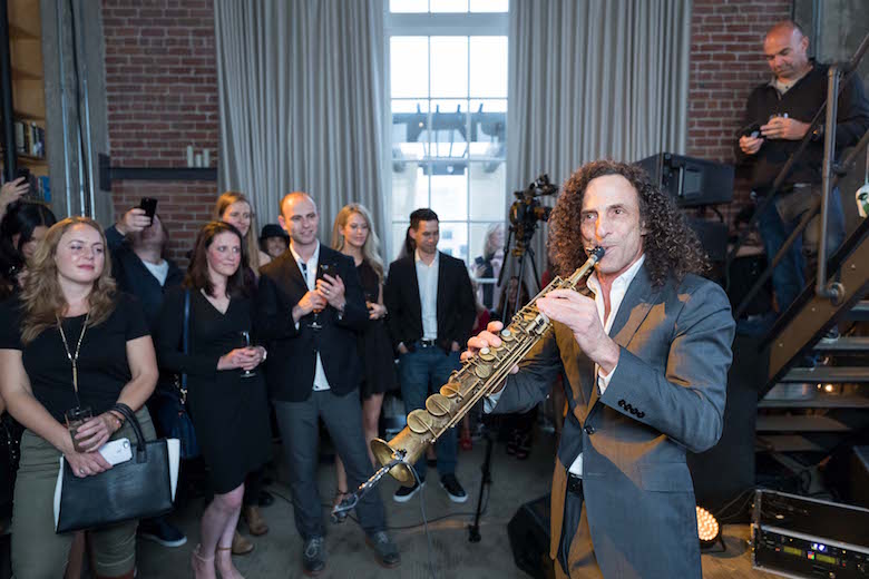 Late last week, an elite group of San Franciscans were treated to a private performance by saxophonist, Kenny G, at the Clock Tower. According to Wikipedia, G is the world’s biggest selling instrumental musician with global sales totaling more than 75 million records. He’s also the co-owner of an award-winning gin, Hana, that’s handcrafted on Treasure Island. The evening of great sax and smooth gin featured an exclusive 30-minutes saxophone and jazz show by G. 150 guests sipped on gin cocktails while taking in the stunning penthouse views and nibbling on seasonal bites.
