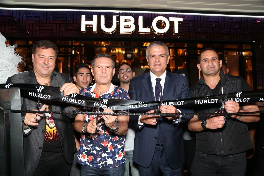 The official ribbon-cutting ceremony in Caesars Palace Forum Shops unfolded on August 25, when guests, including undefeated professional boxer and Hublot partner Mayweather, stepped on a Hublot “boxing ring” instead of on a red carpet. Among the notable attendees were Hublot friends Eduardo Serio of Black Jaguar White Tiger, Ferrari Scuderia Corsa driver Martin Fuente as well as a host of boxing legends in the likes of Julio Cesar Chavez, Danny Garcia, Mikey Garcia, Shawn Porter, Ernie Shavers, Andre Berto, Errol Spence, Jr. and Paulie Malignaggi.