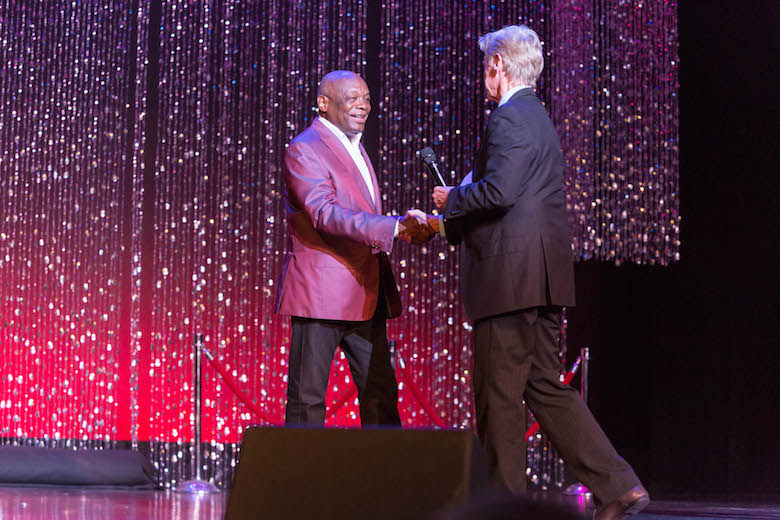 The event took place at Herbst Theatre and featured a VIP reception, outstanding show, and after party. Chic guests, like Farah Makras, Brenda Zarate, and Rada Katz, mingled with politicians and leaders in the LBGTQ community. Guests nibbled on extra sharp cheddar cheese while enjoying an open bar in the stylish green room. The performance was produced by REAF board chair Joe Seiler and executive director Ken Henderson. The highlight was an exceptional song and dance by the touring cast of Something Rotten that was specifically created just for the event. Other performances included local jazz lady Paula West, who sang a tribute to Bob Dylan, Garrett Clayton, who starred in the television movie Hairspray Live, and sang ‘It Takes Two’ from that show, and Tony award-winner Levi Kreis, who reprised his song from Million Dollar Quartet. The entire cast closed the show with REAF’s theme song, ‘Help is on the Way’ by David Freidman. The set design was by Josh Koral of Acme Scenery and consisted of a glorious shimmering backdrop with crystal curtains and glittering chandeliers.