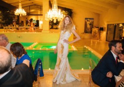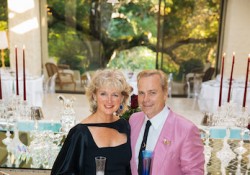 The prelude to the Wine Celebration was a wildly exclusive event that took place on Wednesday, August 2 at the former Mondavi Wappo Hill Estate, the current home of wine’s biggest power couple, Jean Charles Boisset and Gina Gallo. Dubbed the Gems of Napa, invitations to the event were auctioned off at last year’s Wine Celebration. Attendees bid $5K for a ticket to the dinner, which included an intimate dinner and Rubin Singer fashion show. Singer, who has dressed everyone from Beyonce to Sharon Stone, created custom dresses for the “Gems of Napa,” a select group of female winemakers who were pouring their wines at the event. The Gems were Michelle Baggett of Alpha Omega Winery, Heidi Barrett of La Sirena and Amuse Bouche, Blakesley Chappellet of Chappellet Vineyard, Amy Marks Dornbusch of Gemstone Vineyard, Gina Gallo of Louis Martini and Orin Swift, Helen Keplinger of Keplinger, and Beth Nickel of Far Niente and Nickel and Nickel. Stylist Victoria Hitchcock styled the looks for the vintners at this once-in-a-lifetime dinner. Guests dined, alongside the indoor pool, on a meal of butter-poached lobster, truffled squab breast, foie gras, and milk chocolate mousse. The menu was created by Chef Victor Scargle and the culinary team of Atelier Fine Catering.
