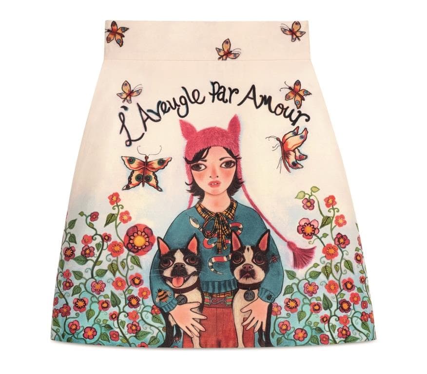 Channeling Unskilled Worker’s expressive artwork of portraits and floral patterns as well as Michele’s eclectic Romanticism, the line has reimagined such signature items as GG Marmont shoulder bags, Ace sneakers and Princetown mules. It also includes printed dresses, silk skirts and blouses, denim jeans, patched knitted tops, sweatshirts and shawls among other wardrobe staples.