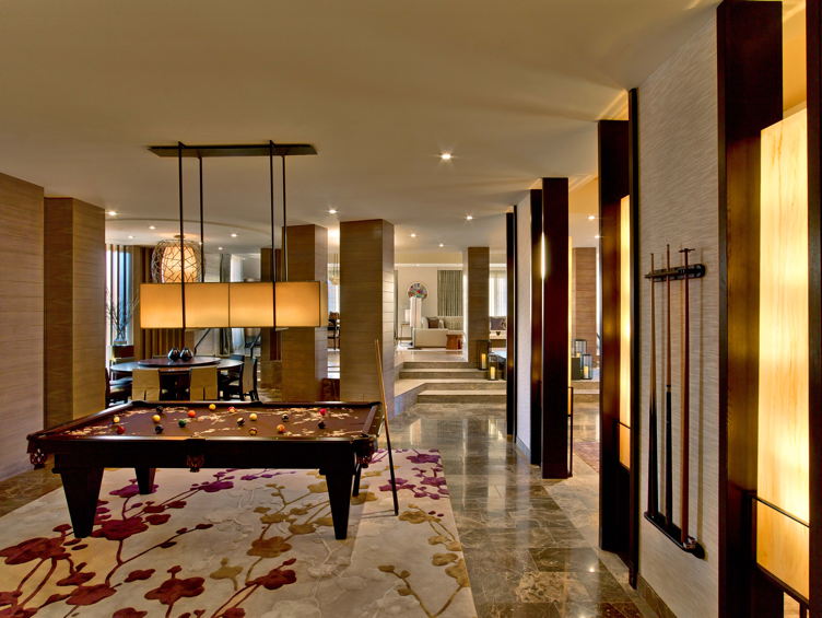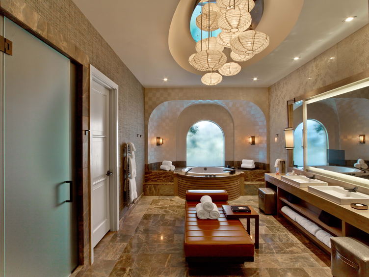 The three-bedroom 10,300-square-foot Nobu Villa is a behemoth in the best way. It also happens to be the hotel’s only rooftop villa. Upon entering, you’ll find Japanese-inspired design, lemon-ginger scents, custom music, fine cuisine made by Nobu chefs and spa services. The sky deck offers Strip views, a fire and water feature, a full bar and barbecue pit, a dining area and a secluded Zen garden with an Italian-made whirlpool. Complimentary round-trip airport limo service is included the reservation. There’s also a jacuzzi, a sauna, a gaming room and butler pantry, making this high-end villa one of the top spots for celebrity parties and gatherings for the billionaire set.