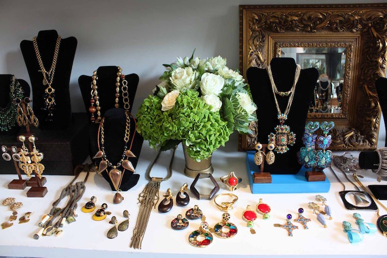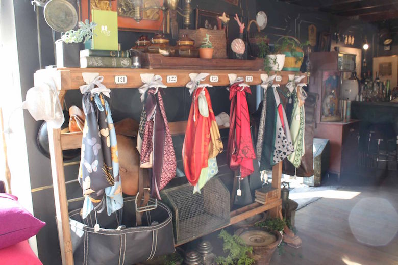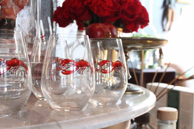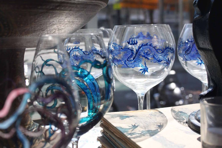 To commemorate the collaboration, Rachman hosted a stylish soirée at his treasure-filled shop, which is across the street from Zuni Café. To make the exhibit’s launch even more festive, Rachman invited Susie Hoimes, Margot Larkin, and Lydia Kortelink to showcase their unique goods. Hoimes has an extensive collection of vintage jewelry, MDVII; Larkin makes hand-painted glassware—think wine glasses with pretty coral motifs; and Kortelink is the founder of Merritt & Rich, a whimsical collection of silk scarves. The women mingled with guests chatting about their respective companies and selling their gorgeous goods.