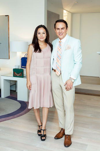 Last week the elegant philanthropist, Bahya Oumlil-Murad, luxury realtor, Joel Goodrich, and real-estate developer, Mark Calvano, threw a party in honor of their friends Mustapha Benosman and Alice Benosman. The Benosmans are founders of MyKilimShop, a new handbag company that designs pretty leather goods in France using handmade kilim rugs that are found in Morocco. Think of the purses as recycled rugs, but at their chicest! The setting was as gorgeous as the handbags—Matt Lituchy the COO of Jay Paul Company opened up the presentation suite of 181 Fremont for the event and guests were able to take in the stunning views of the glittering Bay.