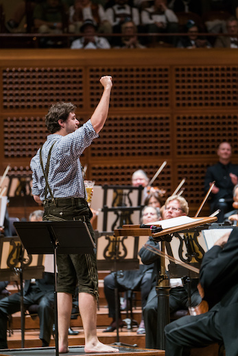 The San Francisco Symphony hosted its first ever Oktoberfest last week and it was a sensational event with fun had by all. Chaired by Libby Leffler Hoaglin with Priscilla B. Geeslin as Honorary Chair, the event began at 6 p.m. with a festive biergarten for VIP ticket-holders. The party was inside Davies Symphony Hall in a rehearsal space shared by the Symphony and SF Opera. The room was transformed by Blueprint Studios into a beer garden with twinkling lights, circular chandeliers hanging with ribbon, wooden picnic tables, and carousal horses. Guests, wearing dirndls and lederhosen, sipped an assortment of Anchor Steam beer and nibbled on salty pretzels with three different dipping sauces. At 7 p.m., resident conductor Christian Reif led a concert featuring Bavarian waltzes and polkas, rollicking opera arias, and traditional drinking songs with the San Francisco Symphony and guest vocalists soprano Julie Adams, mezzo-soprano Daniela Mack, baritone Edward Nelson, and tenor David Blalock. It was a shorter performance with no intermission and everyone in the audience drank beer from plastic sippy cups during the show. Afterward, guests were invited back to the beer garden for bratwursts, potato salad, strudel, and a polka dance party with a live band. It was a fantastic evening—next year’s event should not be missed!
