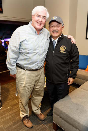 The evening kicked off with a cocktail reception where Mark Laret, the CEO of UCSF Medical Center, and Dr. Michael Anderson, president of UCSF Benioff Children’s Hospitals, presented the hospital’s patients Cameron and Cailey Tennyson with the UCSF General Colin Powell Medal of Courage Award. Both entered the world with life-threatening heart conditions that required multiple surgeries, invasive procedures, and complications, but through treatment at UCSF Benioff Children’s Hospitals are now leading fulfilling lives and helping others.