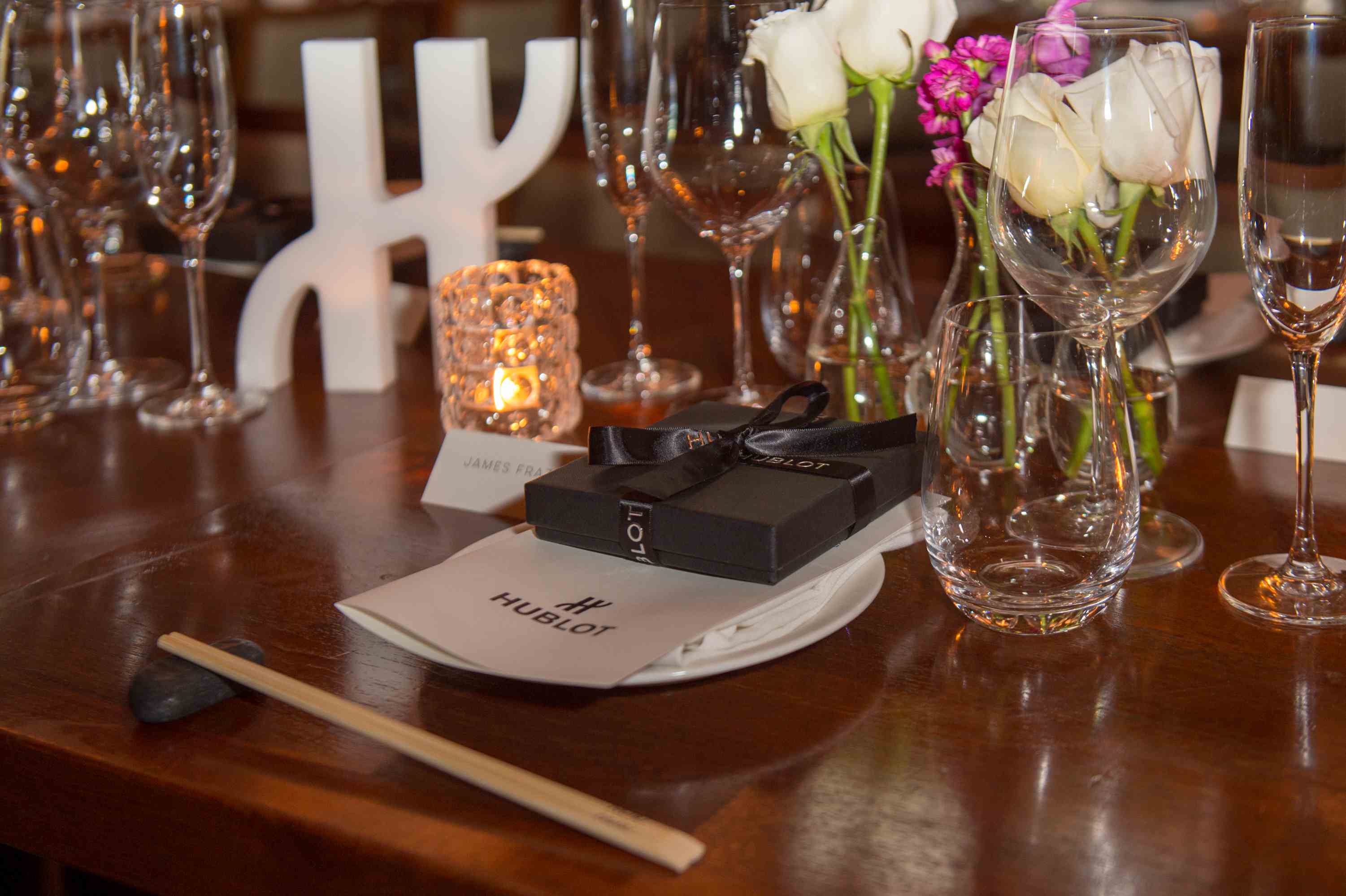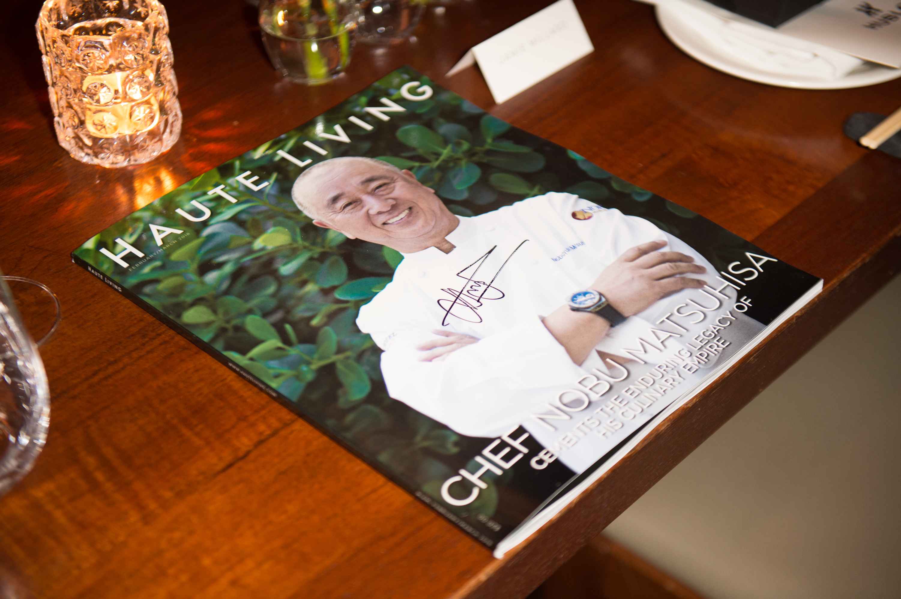 Once seated for dinner, attendees received a special gift from Hublot as well as a personally signed copy of the magazine by none other than Nobu-San himself. The dinner was even more special, as Nobu chose to use the occasion to give guests an exclusive sneak-peek at his upcoming Nobu Cookbook, which is compiled of three different recipes from each of his 38 executive chefs from Nobu locations across the globe. While the book is still in the works, upon its release, all proceeds will be donated to different charities every few months throughout the world.