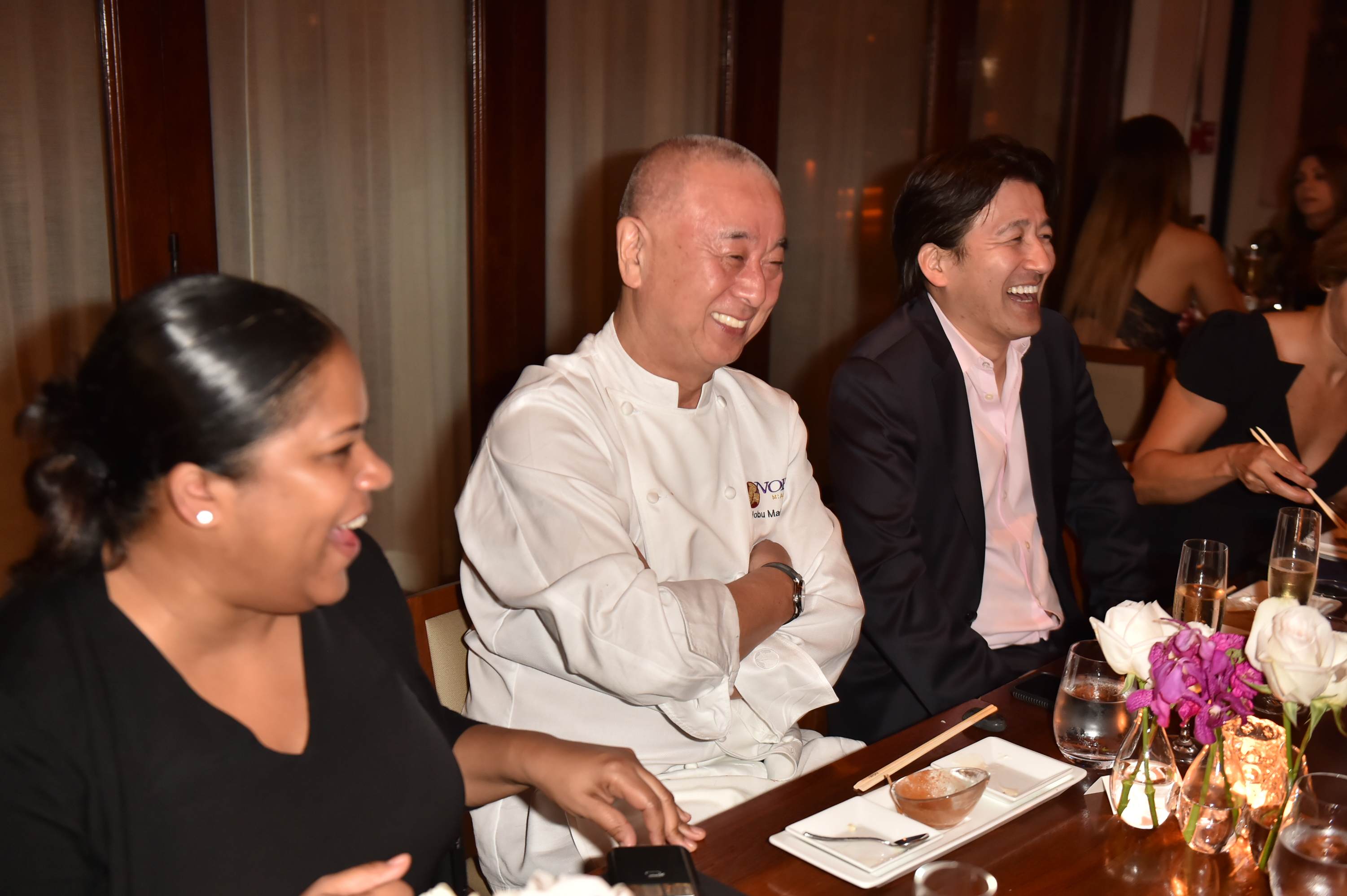 The humble and gracious chef made his way into the restaurant’s private back room, which was decked out in honor of the grand occasion. Nobu-San sported a stunning Hublot timepiece and his signature chef’s jacket as he made his way around the room, shaking everyone’s hands and thanking them for coming to celebrate with him.