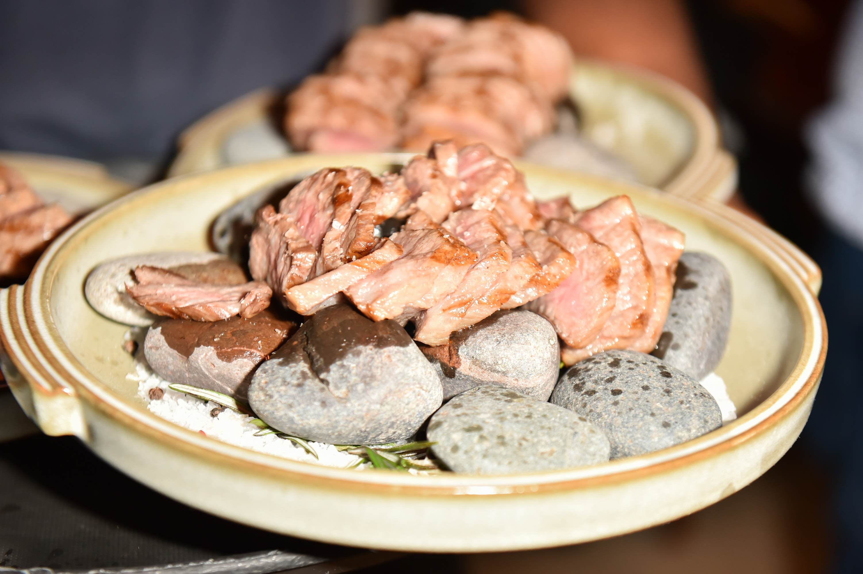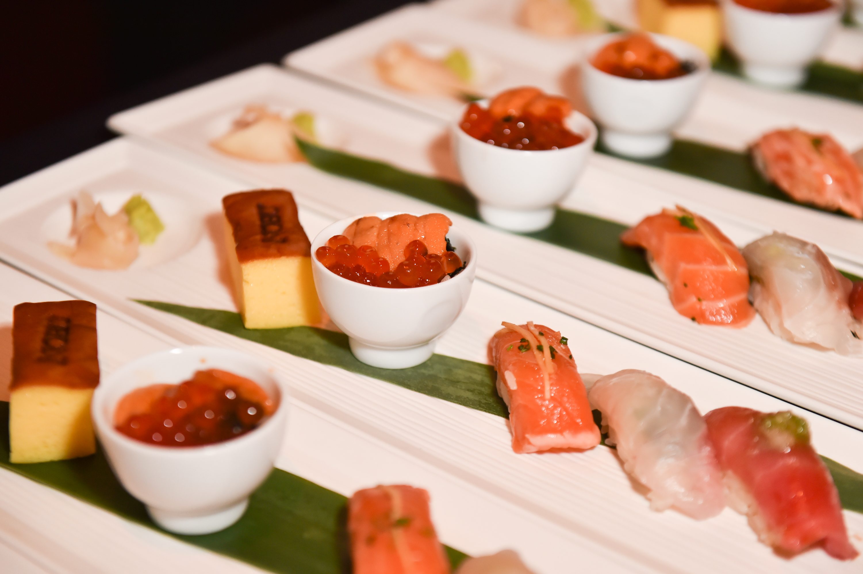 Menu highlights included a Toro Tartare Mediterranean Style, topped with caviar created by Tony Vratsanos—sushi chef of Matsuhisa Athens; Santenmori Botan Ebi with Shiso Gazpacho from Teruya Noriyoshi—sushi chef from Nobu Hotel Shoreditch; Nobu-San’s Selection of fresh Nigiri with signature flavors; and the extravagant Wagyu Hot Stone with wasabi gremolata, which was flambéed table side, from Thomas Buckley—executive chef of Nobu Miami.
