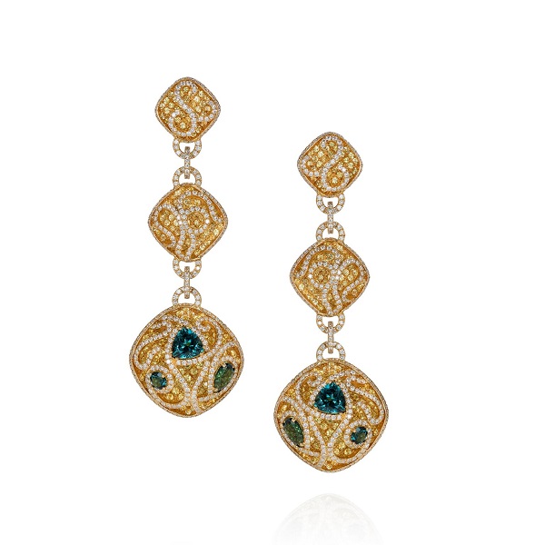 Two days later the stunning model shut down the red carpet for the 71st Cannes Film Festival with Avakian’s latest “La Mystérieuse” collection. With a hint of Art Deco, “La Mystérieuse” clearly demonstrates the House’s love of colors, playfulness, and unusual shaped stones, where the earrings can be reversed and worn on 2 different sides, each displaying different colored diamonds