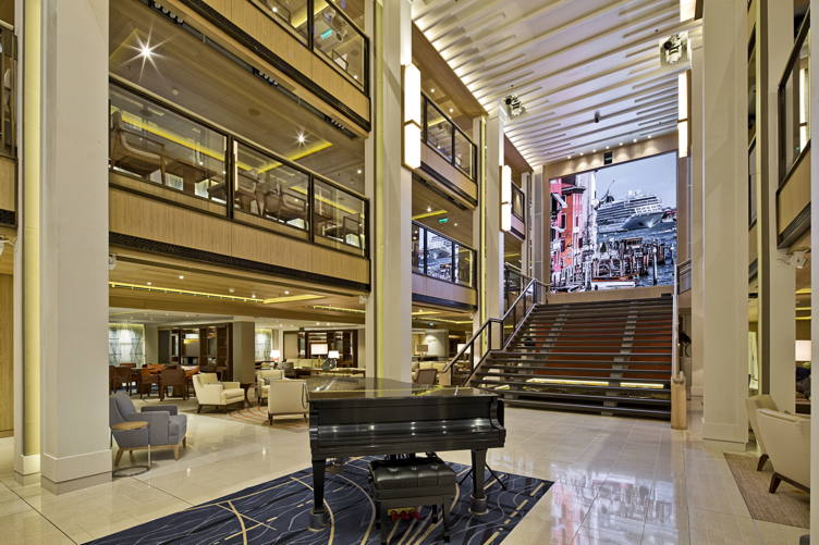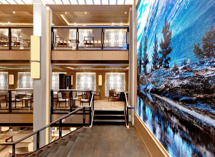 Although there are 930 staterooms on board, with nine decks, the ship still feels small and never feels crowded. There are ten dining options on board. These include The Restaurant, the vessel’s standard option with a menu that includes regional cuisine as well as always available American classics enhanced with locally sourced ingredients, so you can explore new cultures through food; Manfredi’s, an Italian-fare specific eatery; The Chef’s Table, the ship’s one true fine dining option with wine pairings available; World Cafe, a buffet-style, low-key option; Aquavit Terrace, an al fresco eatery; Mamsen’s, a Norwegian-specific culinary offering available in the Explorer’s Lounge; Wintergarden, an elegant space under a canopy of Scandinavian trellised wood where guests can indulge in a full afternoon tea ceremony while enjoying the soft strains of a string quartet; the pool grill for some pool-side afternoon dining; or even room service. There is also the amazing Kitchen Table, where guests can immerse themselves in local culture and cuisine as part of an optional interactive culinary journey. At this onboard cooking school, experience firsthand how the ships’ world-class chefs bring distinct, local flavors from market to table by actually joining the chefs in culinary markets at port, picking your own ingredients, and learning how to prepare regional dishes.