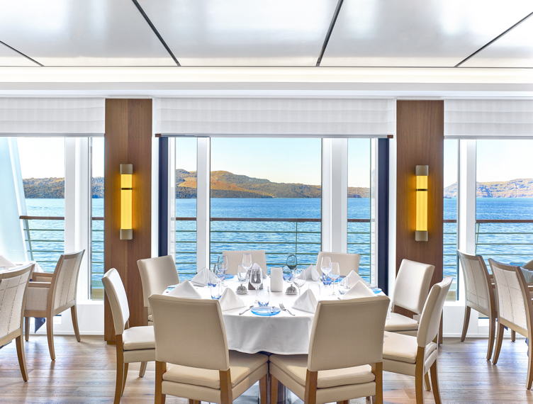 Luxury lovers have two solid options in terms of staterooms. While we could never recommend a typical guest room (at 270 square feet, it’s a squeeze), but we do think you’ll love the Owner’ Suite. It’s the largest bedroom on board: 1,448 square feet of space with art from Viking Chairman Torstein Hagen‘s personal collection. Those who book this gorgeous room will sleep soundly in the luxurious Viking Explorer bed; have access to three 42-inch flat-screen, interactive LCD TVs; a mini-bar with alcoholic beverages, water and snacks that are upgraded daily; a huge master bathroom featuring a spacious glass-enclosed shower, double sink vanity, heated bathroom flooring and an anti-fog mirror; two additional guest bathrooms; direct-dial satellite phone and cell service; premium Freyja toiletries; a large walk-in closet; complimentary laundry, dry-cleaning, pressing and shoe-shine services and in-suite binoculars. There’s also a massive dining area that seats six, a living room, a private library, wine and music collections cultivated by Hagen, daily personalized tea or pre-dinner cocktail and canapés by request and guided tours with the captain or key ship personnel. And yes, there’s more. There’s an in-suite boardroom for business meetings and catered dinner parties with a vapor-light fireplace, a pantry, and an ocean-view dry sauna that’s utterly amazing. Plus, guests who book this sweet suite will receive a complimentary shore excursion with a private driver in a port city of your choice, valued at up to $800, the first opportunity to book shore excursions (107 days in advance), four guaranteed reservations at each high-end restaurant on board and the first priority booking of spa treatments (100 days prior to departure). And did we mention the welcome bottle of Veuve Clicquot?
