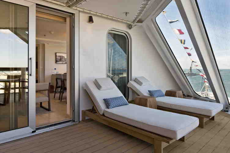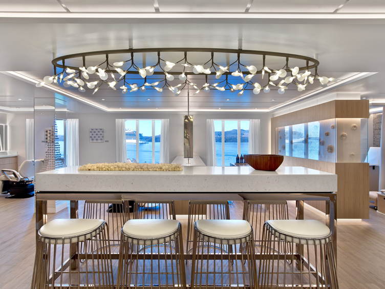If the Owner’s Suite is booked (and it might be—this is a hot ticket and goes quickly), we can also recommend the Explorer’s Suite. In addition to having a cool name, guests will also stay in a 1,163 square foot space with many of the amenities available to those who stay in the Owner’s Suite. Priority shore excursions, however, can be booked 97 days prior, with spa reservations opening up 90 days in advance. There’s only one bathroom, but this suite does have its own living and dining room.