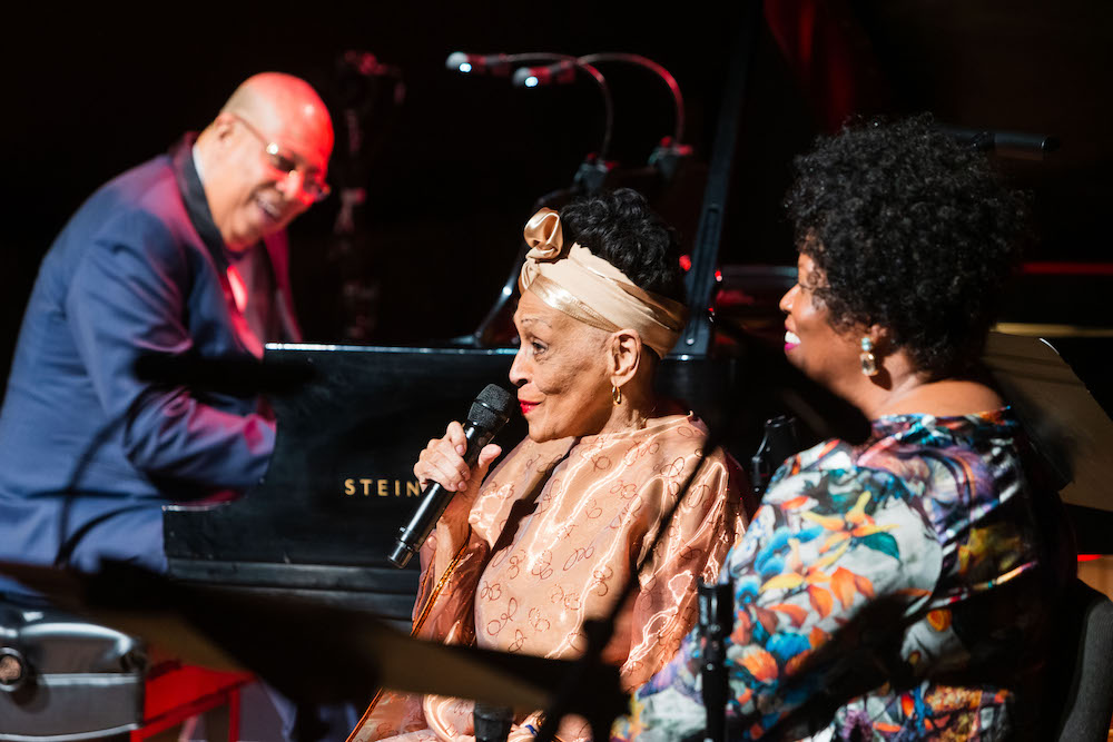 After Derheim’s short speech, a series of musicians performed with some paying homage to Valdés. Irakere 45, Omara Portuondo, Dianne Reeves, SFJAZZ Collective, Stefon Harris, Yosvany Terry, Harold Lopéz-Nussa, Leyanis Valdéz, and the SFJAZZ High School All-Stars Big Band played sensational jazz. There were two highlights: Corinne Bailey Rae’s sweet rendition of her hit, Put Your Records On, and of course when Valdés took to the stage. Joined by vocalist Dianne Reeves and Cuban singer Omara Portuondo, Valdés sang the classic hit song, Besame Mucho, and a moving finale of Dos Gardenias with the 88-year old Portuondo.
