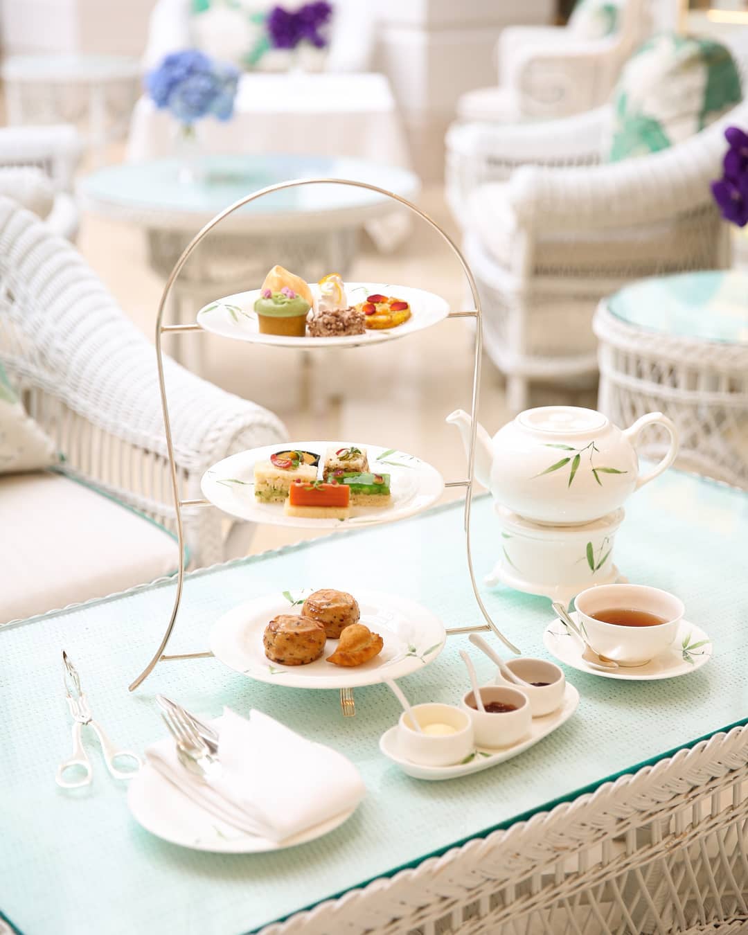 Moving on, head to Bangkok, which offers one of the most elegant afternoon teas you’ll likely ever have in the storied Authors’ Lounge of the Mandarin Oriental, Bangkok. The hotel exudes old world charm reminiscent of the early 1900s, with turn-of-the-century-style wicker furniture and hand-painted fabrics, which perfectly accompany framed photographs of many of the famous writers who have stayed at the hotel since the late nineteenth century.