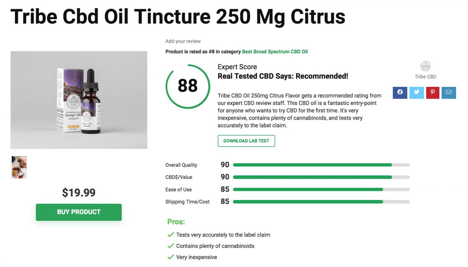 Tribe CBD’s 250mg Broad-Spectrum CBD Oil in a delightful citrus flavor is a great place to start if you are new to CBD. This CBD oil is very affordably priced and is very accurate to the label claim of 250mg of CBD. This oil contains most of the rare cannabinoids we like to see from a broad-spectrum product, but is free of THC, so if you have concerns over an intoxicated feeling or an upcoming drug test, you are in the clear.