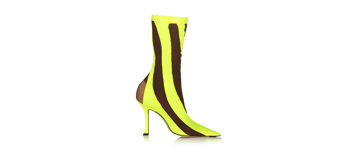 Available both in stores and online the Jimmy Choo X Mugler collaboration is a mix of bold colors and strong styles. Ranging from embellished sandals, lace-up mules, and neon sock boots. Click here to discover more.