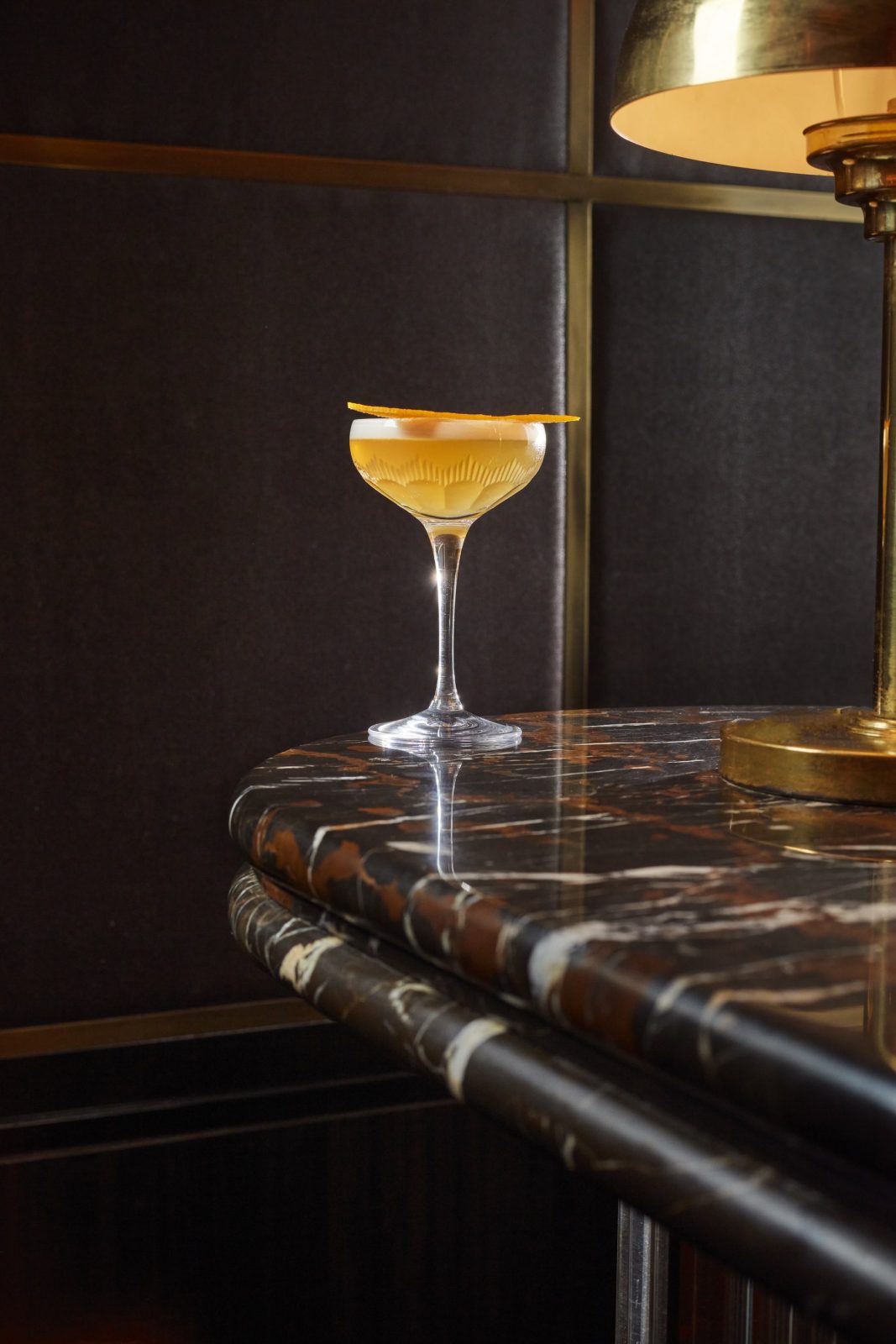 Here, a dark and sultry color palette of black upholstery, polished rose gold detailing and jewel red hints in tactile materials of soft velvet and supple leather exudes sophisticated opulence, which lends itself nicely to a truly marvelous cocktail menu. It’s inspired by writers Agatha Christie and Gertrude Stein who are also depicted on the, walls alongside portraits of James Joyce and Alice B. Toklas in the bold style of Sussex artist Kate Boxer. For negroni aficionados, there’s a dedicated menu with seven libations, including a chocolate Negroni featuring Portobello Road No. 171 Gin, Campari, Crème de Cacao white, and Dolin Rouge.