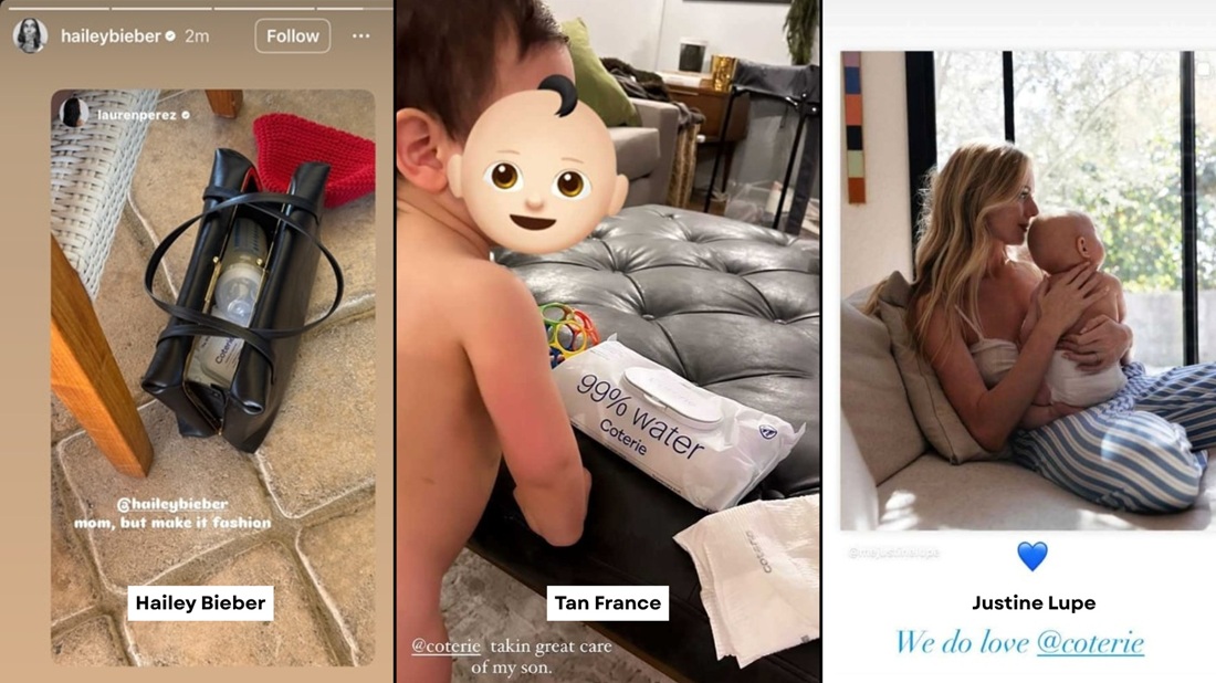 Hailey Bieber — who’s recently been spotted curating the chicest baby finds — has been seen supporting Coterie’s commitment to providing a safe, gentle option for baby’s sensitive skin.