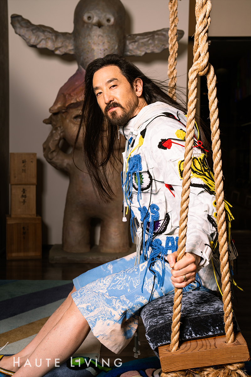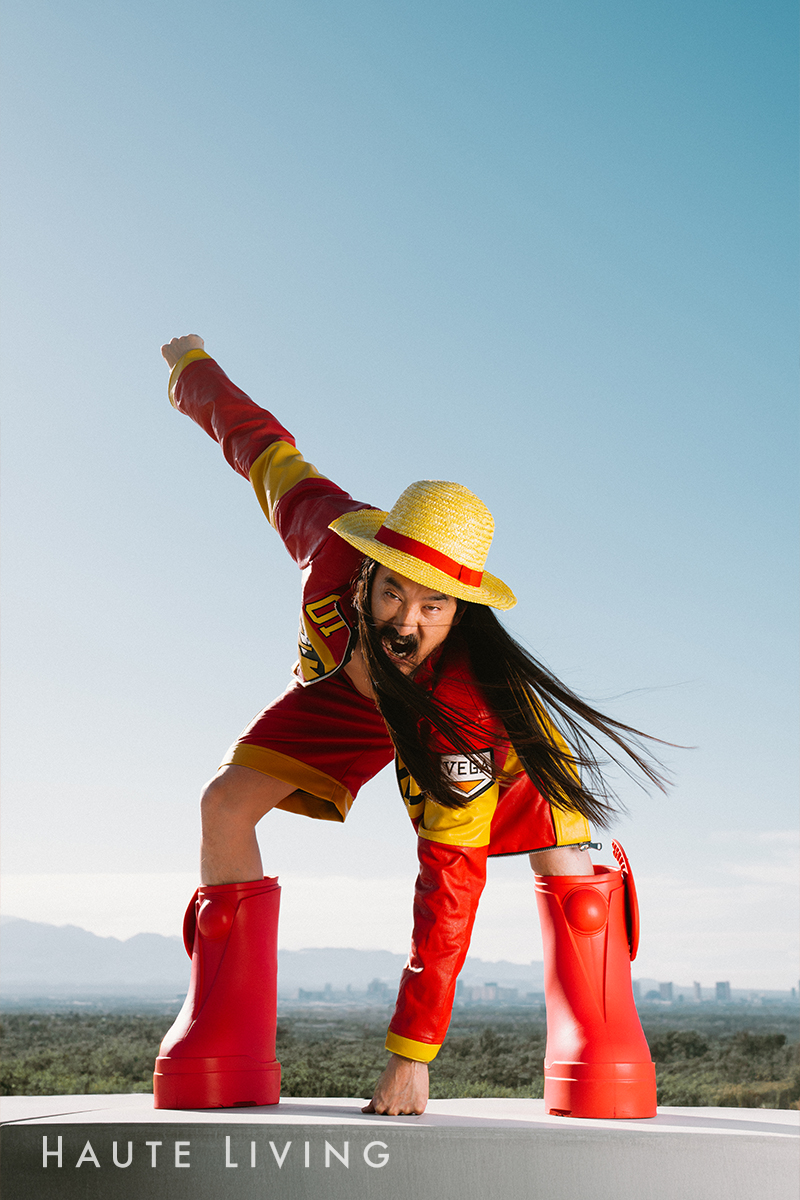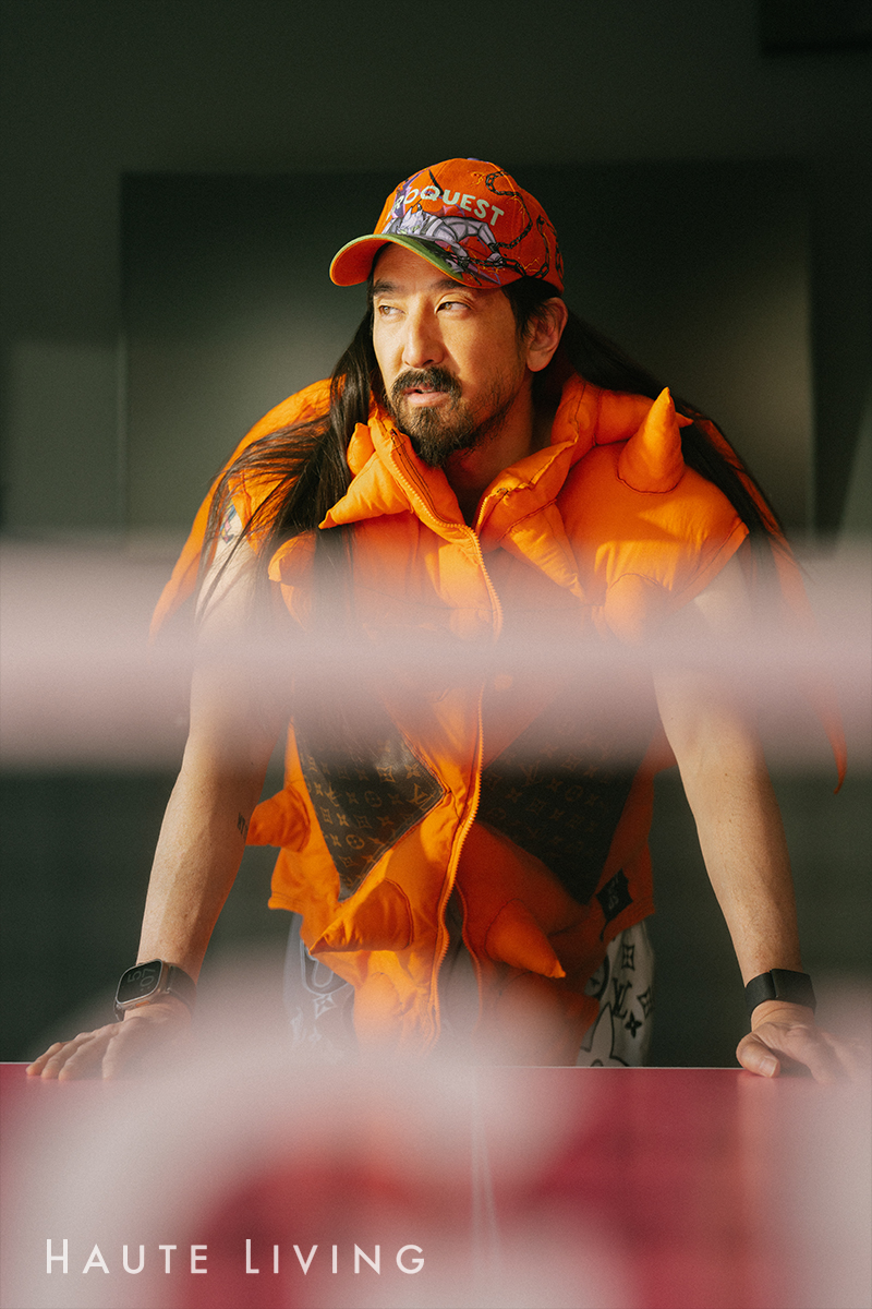 Aoki sees the bigger picture better than most, which, in turn, allows him to see the possibility in almost everything — including Sin City itself. Which is why he seems to have contributed to its growth in ways most haven’t: by being hands-on and creating an environment that allows others to thrive and to enjoy. One might say that the two-time-Grammy-nominated artist, producer, fashion designer, entrepreneur, NFT futurist, cultural force, and innovator actually built the city he wanted here in Nevada in a SIMS-like way. [If you build it, they will come.] Aoki doesn’t just live in Las Vegas — he thrives in it.