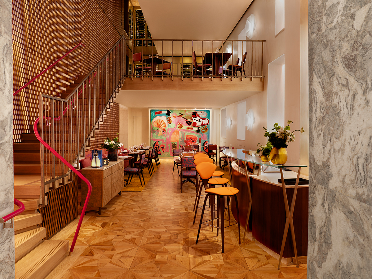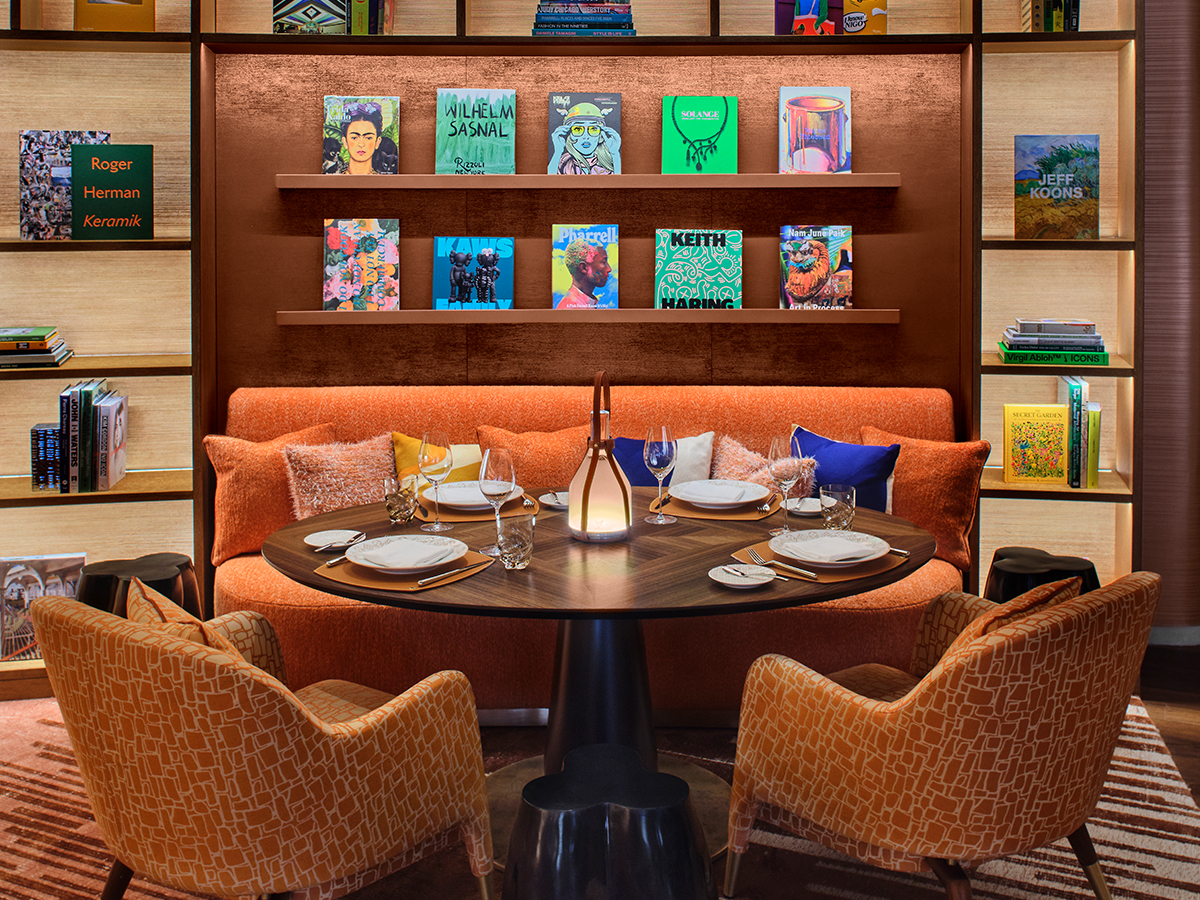 Open during store hours on the fourth floor of Louis Vuitton’s 57th St. location, Le Café Louis Vuitton — a café-meets-library that blends French design with a New York loft ambiance — features a menu by Christophe Bellanca and Mary George, mentored by Arnaud Donckele and Maxime Frédéric, and dishes like Monogram-embossed ravioli and a signature New York lobster roll.