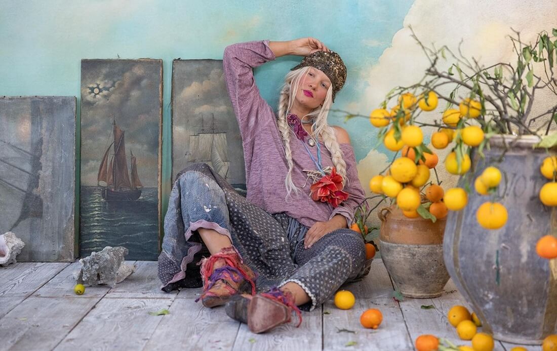 These garments became quiet beacons of hope. Strangers approached her to ask about the stitched shirts, patched bags, and glitter-dusted shoes she wore. Each piece bore the marks of resilience. That tradition continues today. Every Magnolia Pearl creation carries its history in hand-dyed fabrics, layered textures, and delicate imperfections. These garments reach beyond a single wearer to reflect a shared narrative of endurance and reinvention.