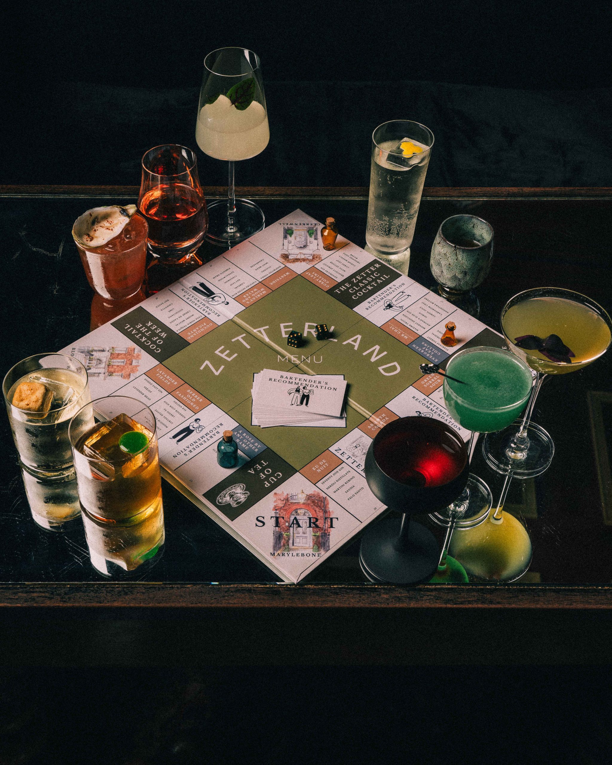 The Bandook cocktail is from The Zetter Marylebone’s Classics menu, however, the hotel — an elegant, 24-bedroom Georgian townhouse and cocktail lounge, located on Seymour Street in London’s fashionable Marylebone neighborhood — also has an interactive cocktail menu Zetterland. This interactive menu invites guests to roll a die and move a miniature cocktail bottle around a specially designed board, starting at the hotel’s own corner. Land on a cocktail and you can order it immediately or draw from a stack of bartender’s recommendation cards for a surprise suggestion. Zetterland is a playful, nostalgic journey through London’s landmarks and culture, blending creativity with a sense of discovery. Each drink is inspired by an iconic city location, offering an experience as photogenic as it is memorable. By fusing novelty, immersion and personalisation, it perfectly captures the growing appetite for travel that is not just seen, but truly experienced.
