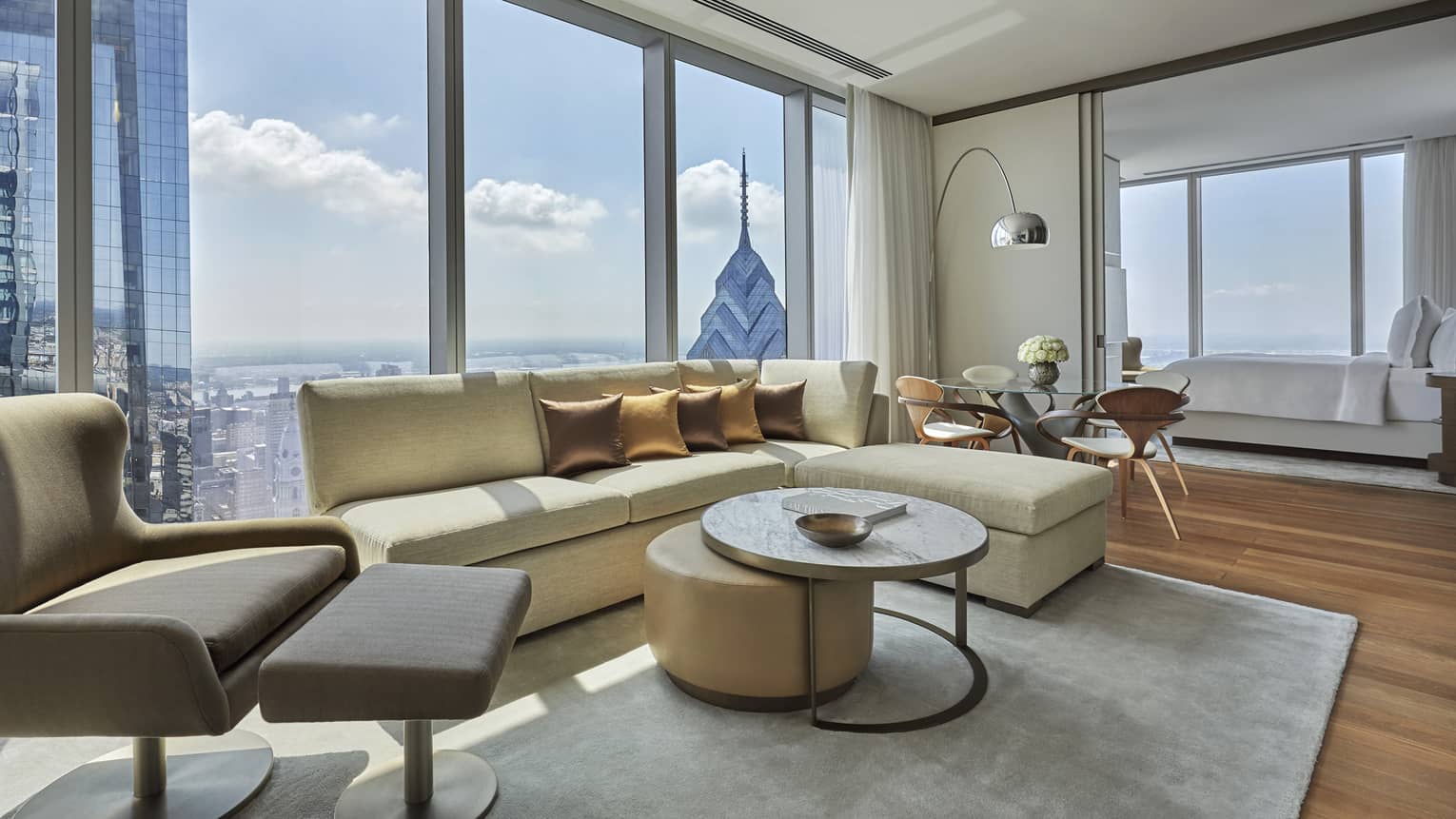 Ultra-luxury finds its perfect expression in the Presidential Suite atop Four Seasons Philadelphia. This palatial 2,137-square-foot suite featuring dual sitting areas, a formal dining room for ten, a fireplace, and sweeping views of the city skyline. During their stay, guests are presented with an exclusive QMS Medicosmetics skincare kit. Complementing the in-suite skincare kit, the hotel’s spa presents a thoughtfully curated menu of QMS Medicosmetics facial treatments. Among the standout offerings is the Collagen Renewal Facial complete with a sculpting, anti-aging ritual that renews elasticity and skin vitality through expertly administered collagen serums.
