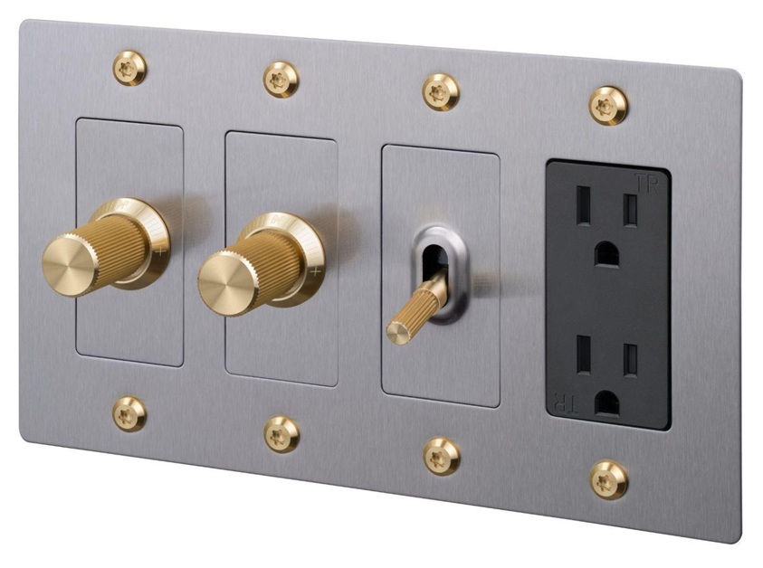The Linear Collection combines architectural knurling with modular sophistication in switches, dimmers, outlets, and USB modules. Drawing inspiration from 1960s hi-fi equipment and Swiss horology, the reimagined Linear pieces feature laser-etched dimmer indices, signature Torx screws, and sleek knurled textures designed to invite the hand and elevate daily interaction. Modular detail kits allow users to swap design languages without replacing core electrical modules. Offered in white, black, steel, brass, and smoked bronze, Linear combines functional innovation with tactile elegance.