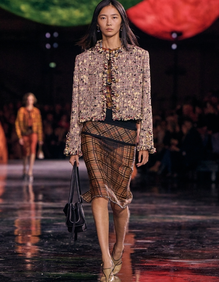 Blazy began with a gesture of origin: the menswear once borrowed by Gabrielle Chanel from Boy Capel. Crisp shirts and tailored trousers grounded the collection, softened by hand-finished details and quiet sensuality. From there, structure gave way to motion. Tweeds appeared slightly frayed, silk knits rippled with movement, and camellias were imperfect and alive — Chanel signatures reimagined with texture and touch.